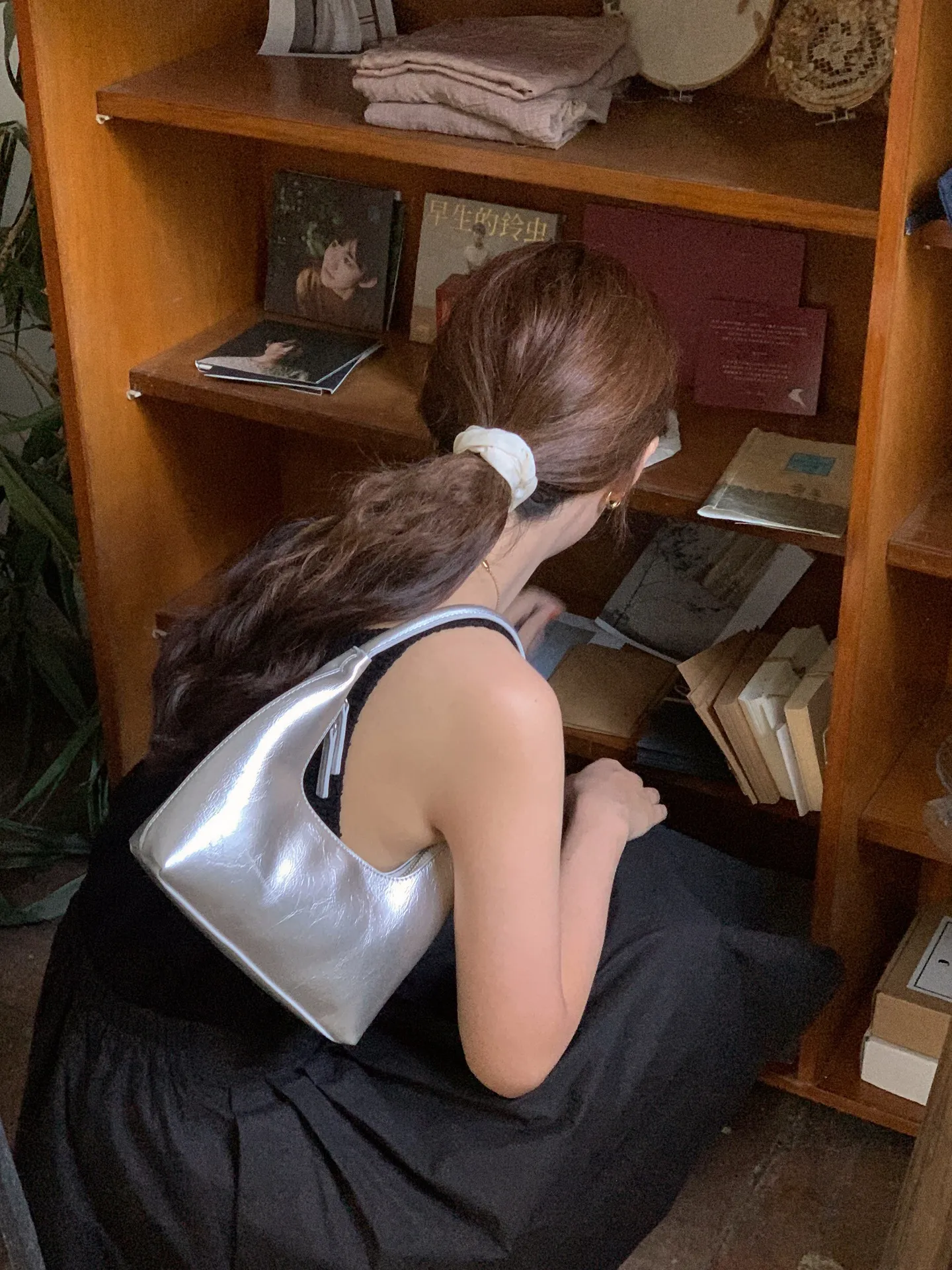 French Style Temperament Silver Hand Carrying Underarm Bag Women