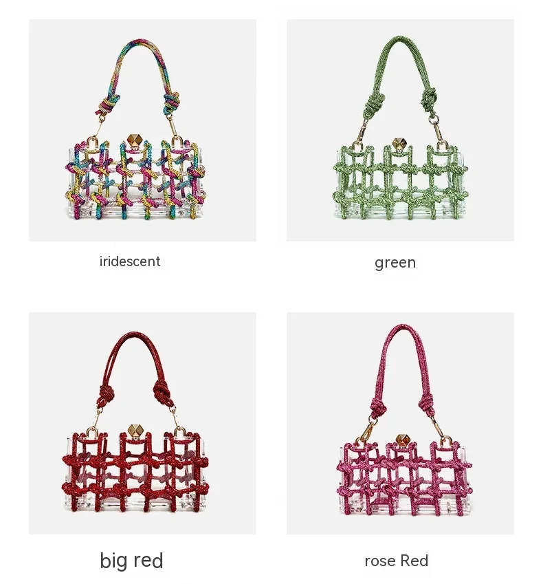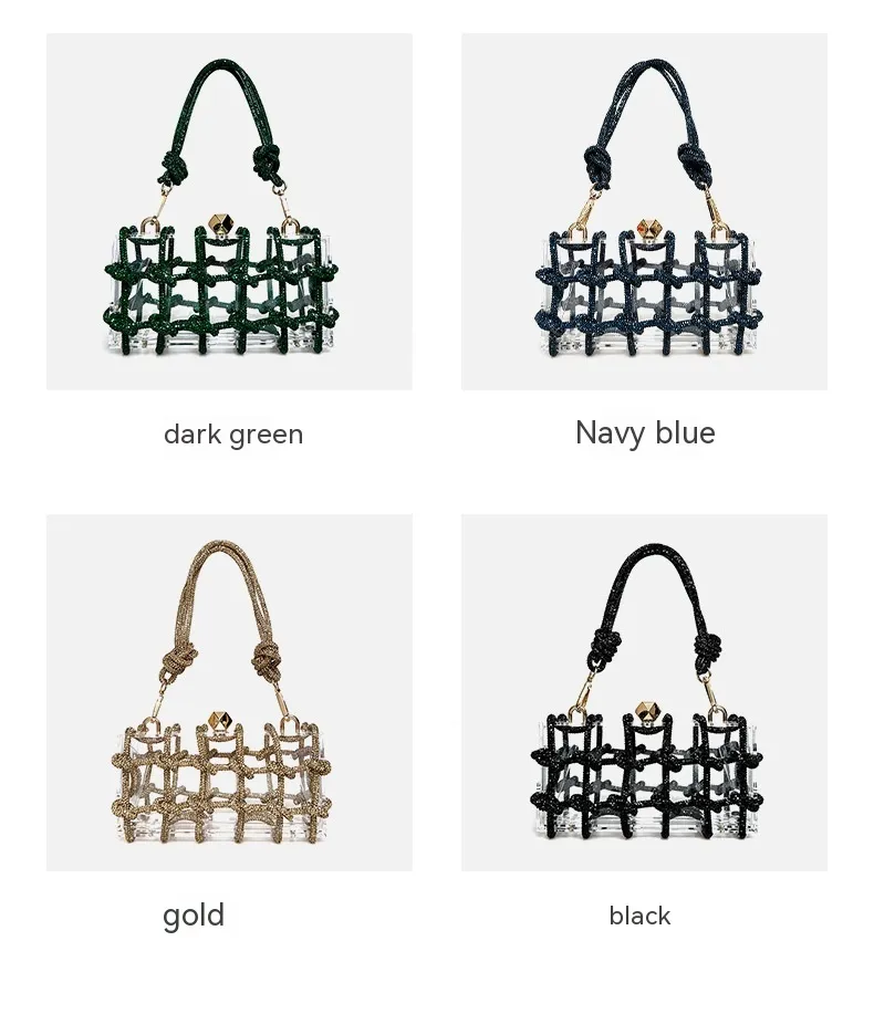 French Sweet Shiny Rhinestone Banquet Small Square Bag