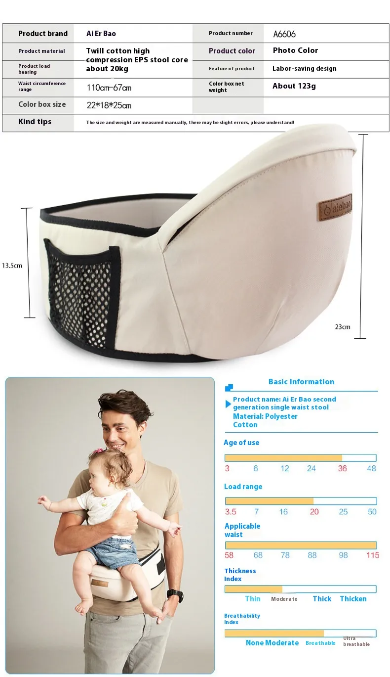 The ergonomic design is especially beneficial for parents who frequently carry their babies, helping to reduce strain on the back and shoulders. The baby stool allows for a front-hugging position, making it easy to bond with your child while keeping them safe and comfortable. The stool is padded for added comfort, ensuring both the parent and baby enjoy a pleasant experience.
