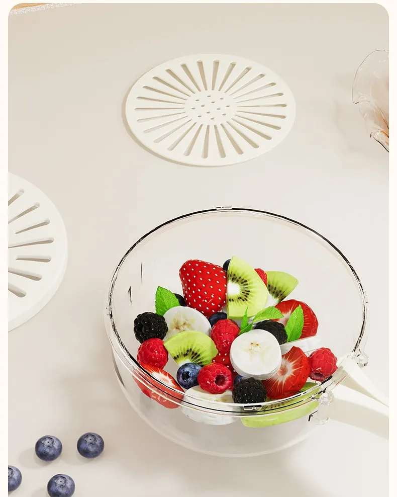 【Versatile Multi-Use】: Our Multifunctional Draining Bowl doubles as a drain basket and refrigerator crisper. Perfect for carrying fruit snacks on the go.