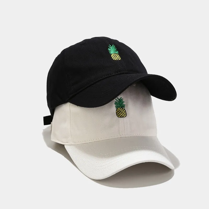 Pineapple Embroidery Design: The cap features a charming small pineapple embroidered on the front, adding a refreshing