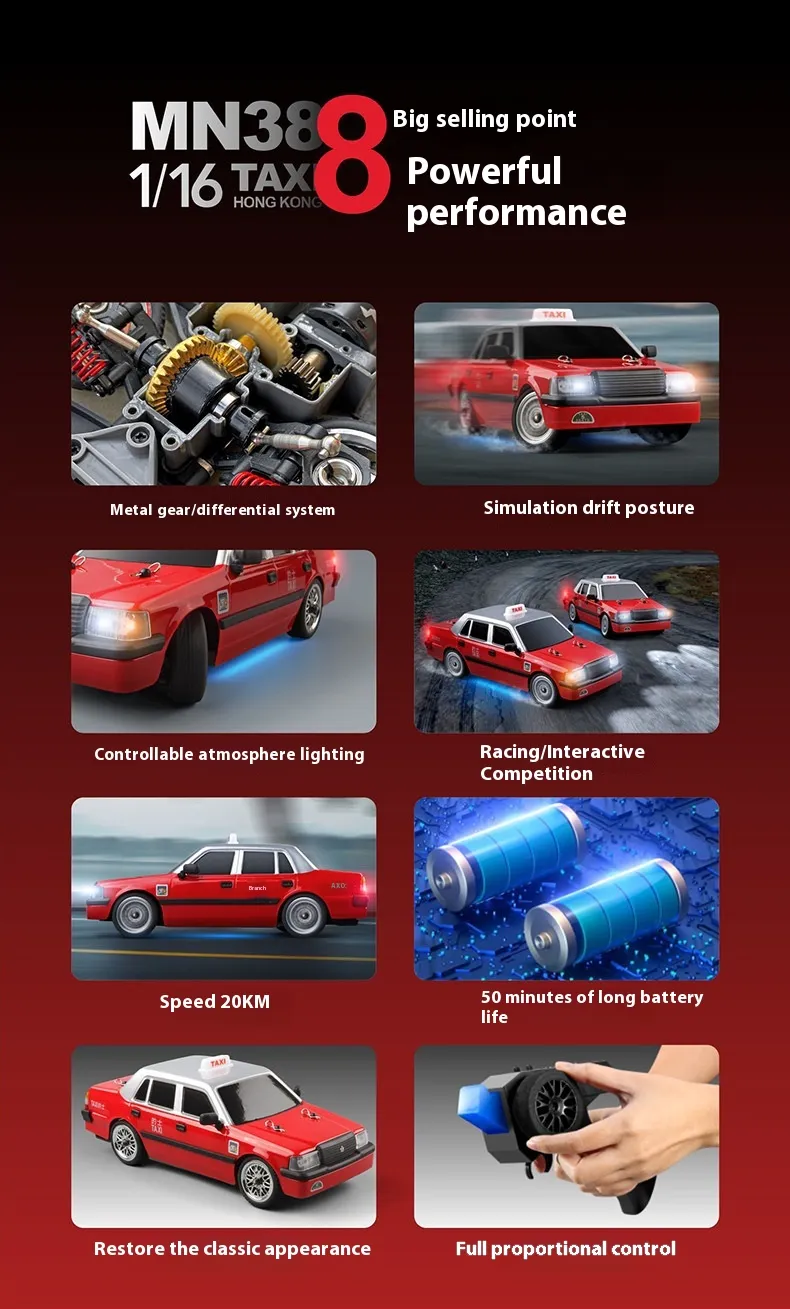 Looking for the perfect gift for a child or adult who loves RC cars, taxis, or drifting? The Full Scale RC Drift Remote Control Car Taxi Toy makes an ideal present for birthdays, holidays, or any special occasion. Its unique taxi design, coupled with high-speed drifting action, offers something for everyone—whether you're a racing enthusiast, a collector, or someone looking for fun outdoor activities.