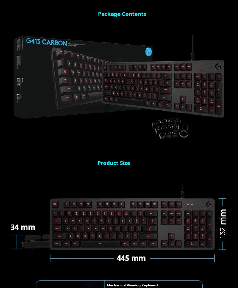 G413 Gaming Electronic Sports Mechanical Keyboard Desktop Backlight 104 Key Metal Panel
