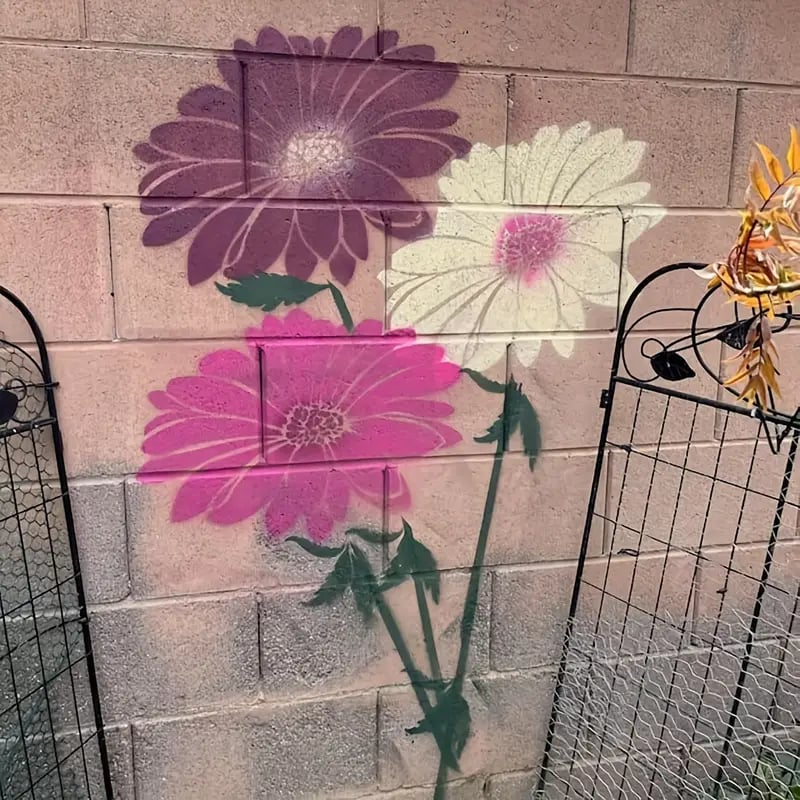 - Flower Decor: These large floral stencils are ideal for painting decorative elements on garden fences, doors, room walls, tabletops, furniture, and backsplashes.
