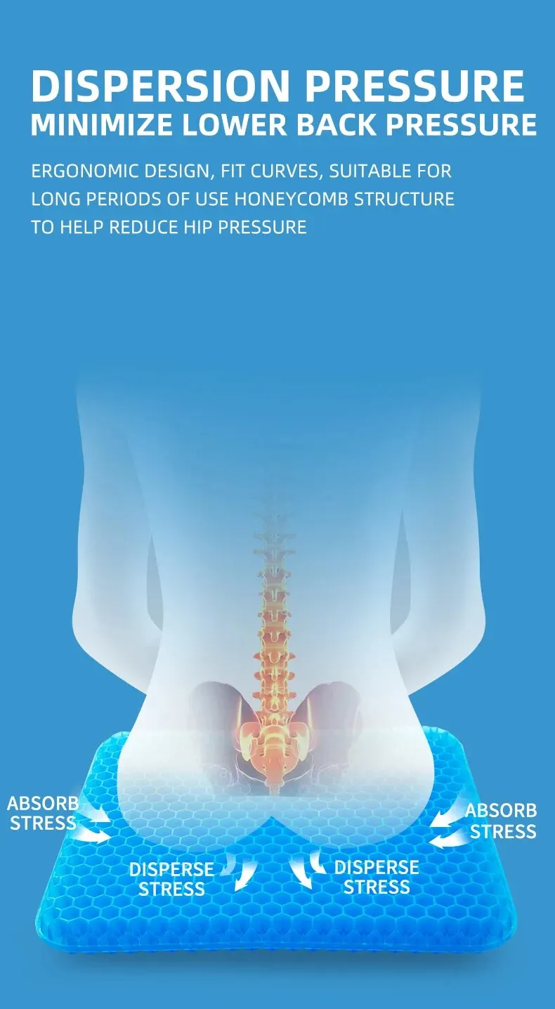 Built with an advanced honeycomb structure, this cushion evenly distributes body weight and reduces pressure on the spine, tailbone, and