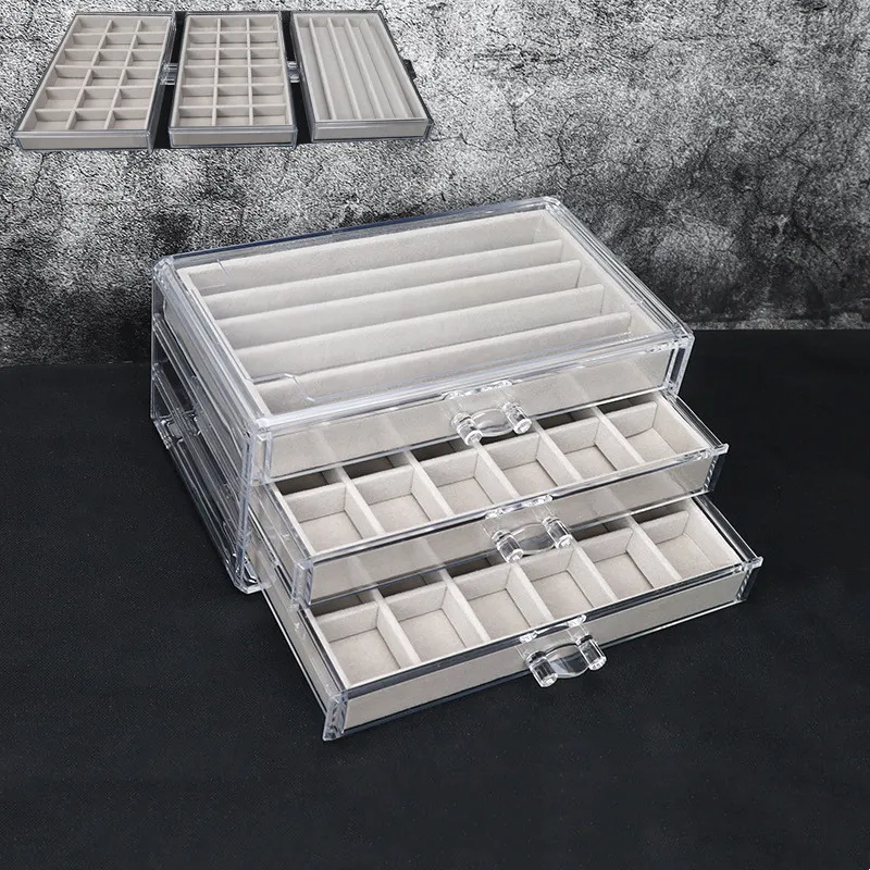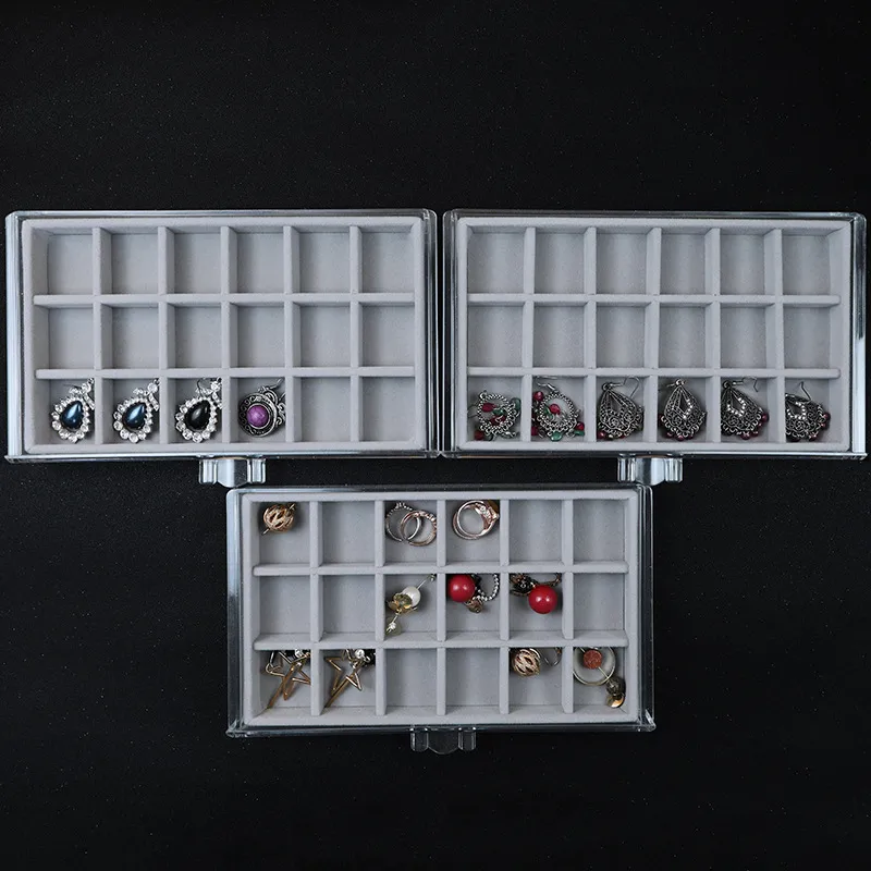 layers (each layer is different),grey three layers (two 18 compartments 1 five compartments necklace box)