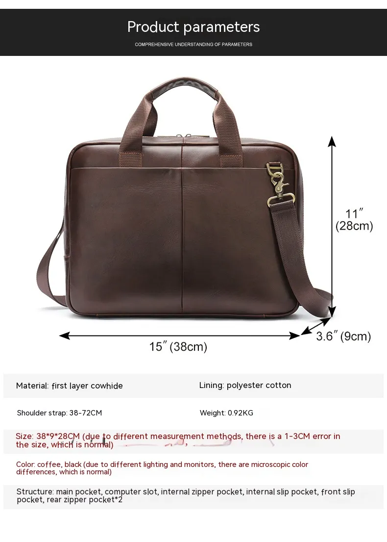 Genuine Leather Large Capacity Briefcase Men's Horizontal First Layer Cowhide Computer Storage Bag