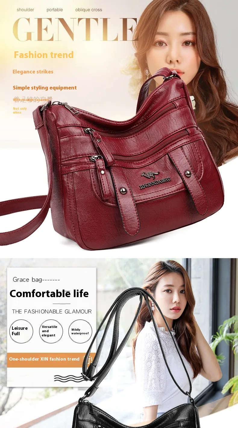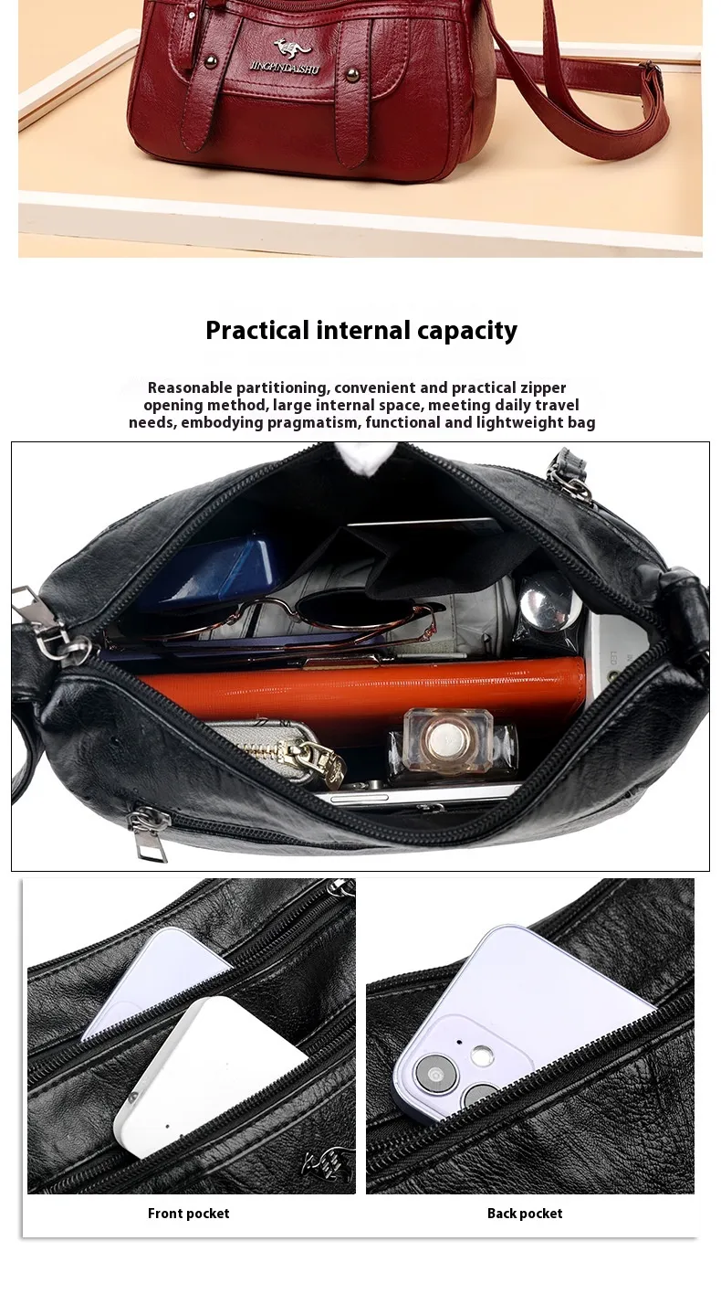 Genuine Leather Soft Multilayer Fashion Large Capacity Simple Shoulder Crossbody Bag