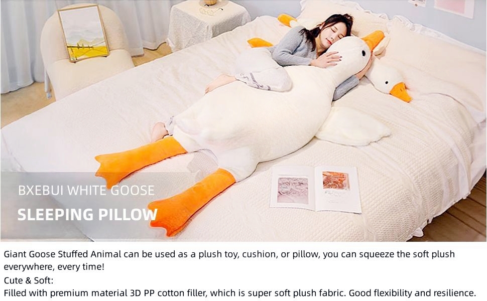 - 【Goose Pillow/Cushion】When hug or snuggle the goose after hard days work, you can get fully release and sink into relaxing and happy moment soon,also it is flexible support pillow for neck,arm,leg and back to relieve pain. Body pillow, hug pillow, home decoration, plush toy gift.