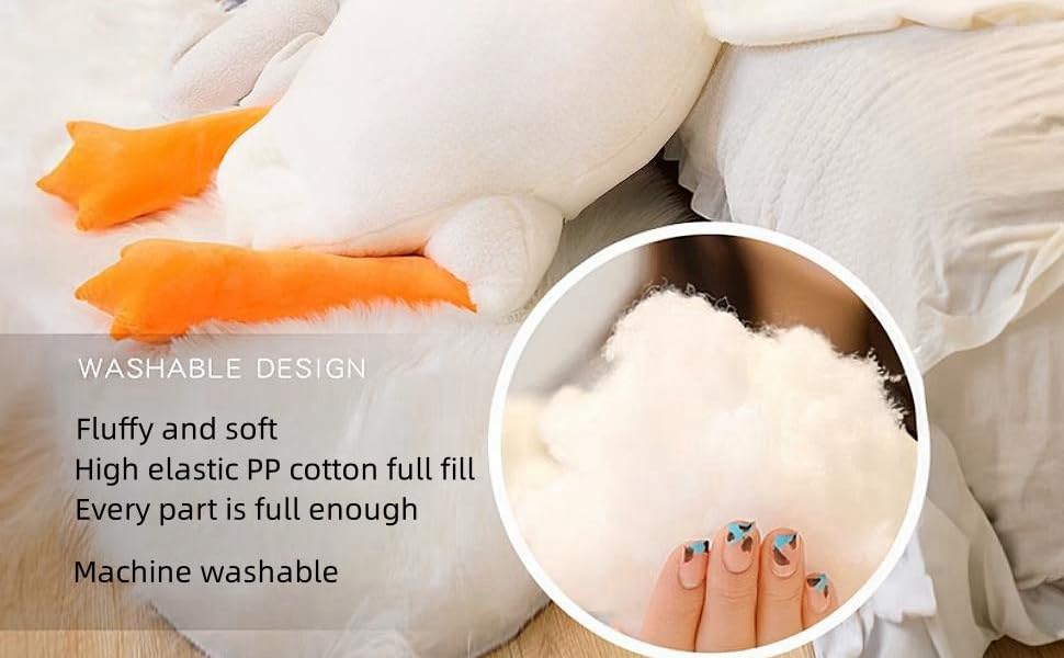 - 1.【Super Soft Fabric】:The giant stuffed animals goose is made of skin-friendly soft rabbit-like fabric and filled with PP cotton by hand; it is soft and smooth without shedding, lifelike shape and not easy to deform by random extrusion