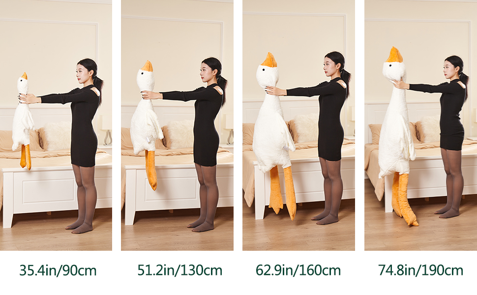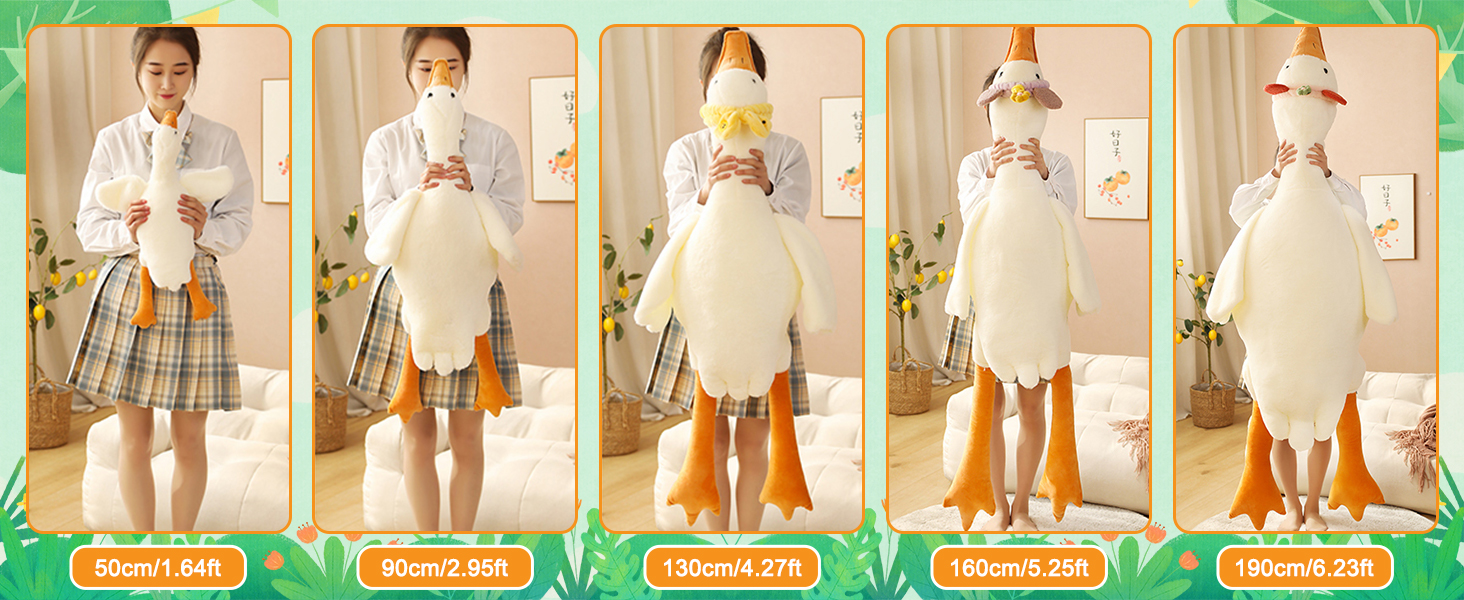 - 【Meet The Needs Of All Ages】 20 in/ 35 in/ 51 in/ 63in/ 75 in. Large geese provide unlimited fun, and small geese bring more cuteness. Perfect as a sleep companion.