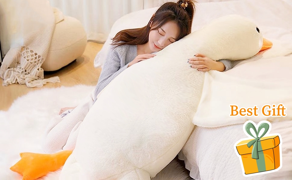 - 3.【Enjoy Comfortable】:The big white goose stuffed toy symbolizes purity, beauty and warmth. When you come home from a day's work to snuggle with the white goose, relax your neck and back, to bring you happy moments