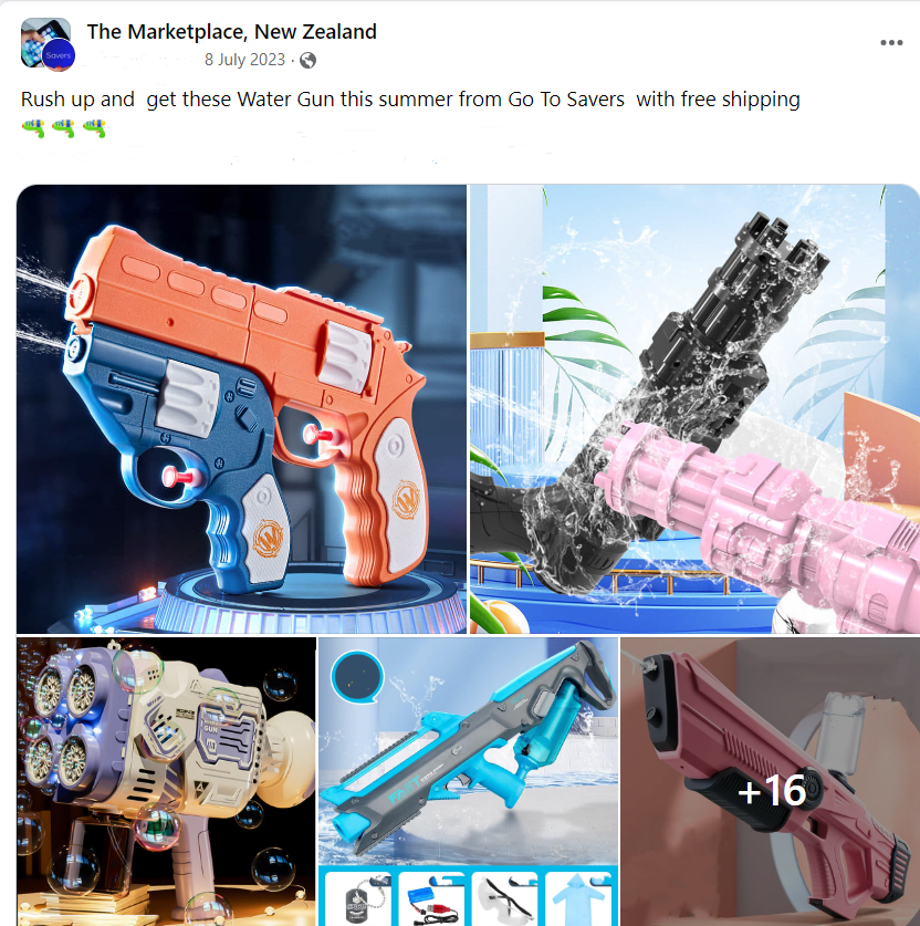 Example of a Non-Original (Copy) Version or a scam on Facebook: