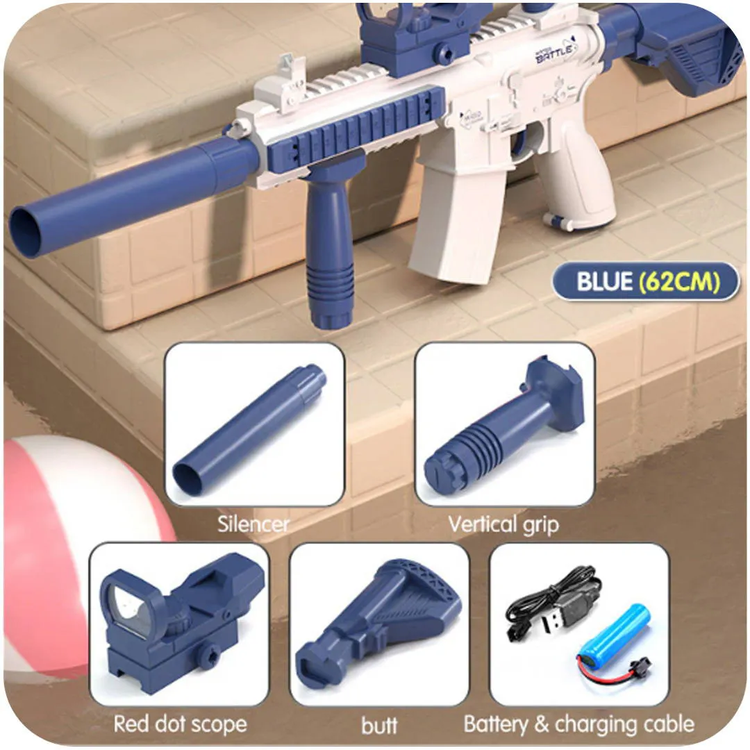 Our water pistol has a large capacity, holding up to 330ml of water and working powerfully with a 7.4V 1500mAh battery. With a shooting
