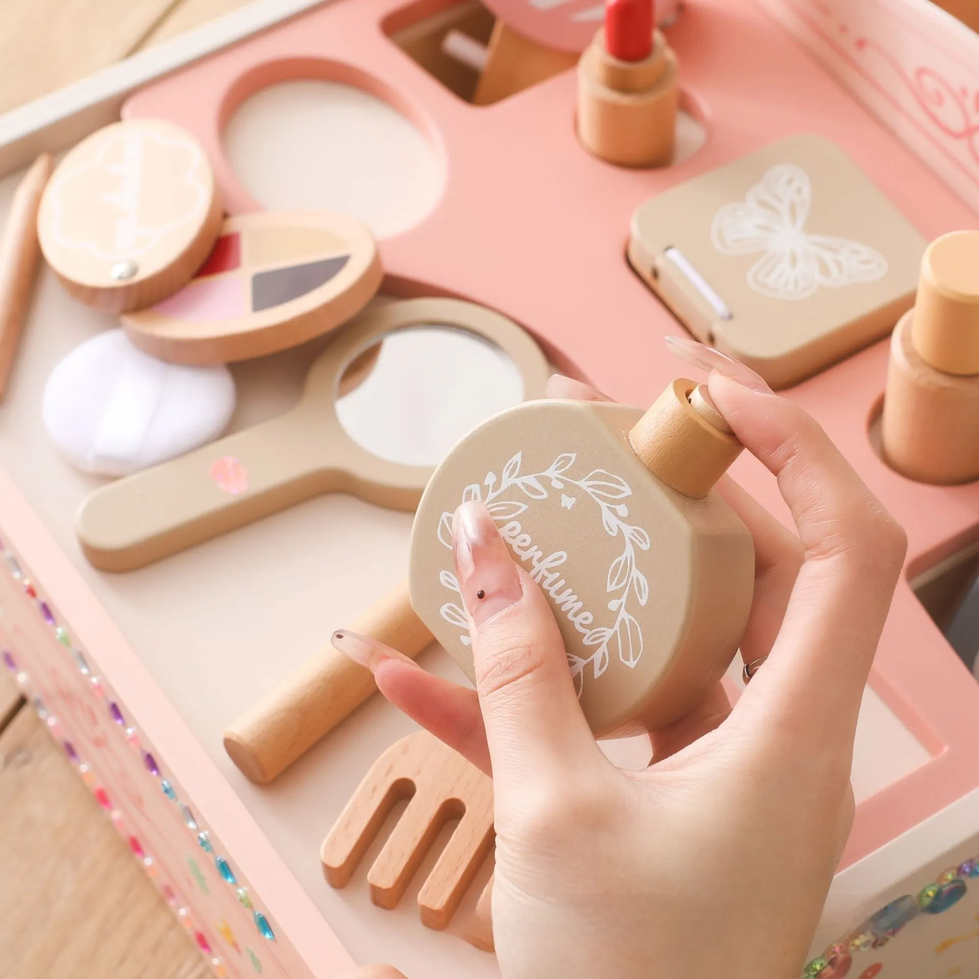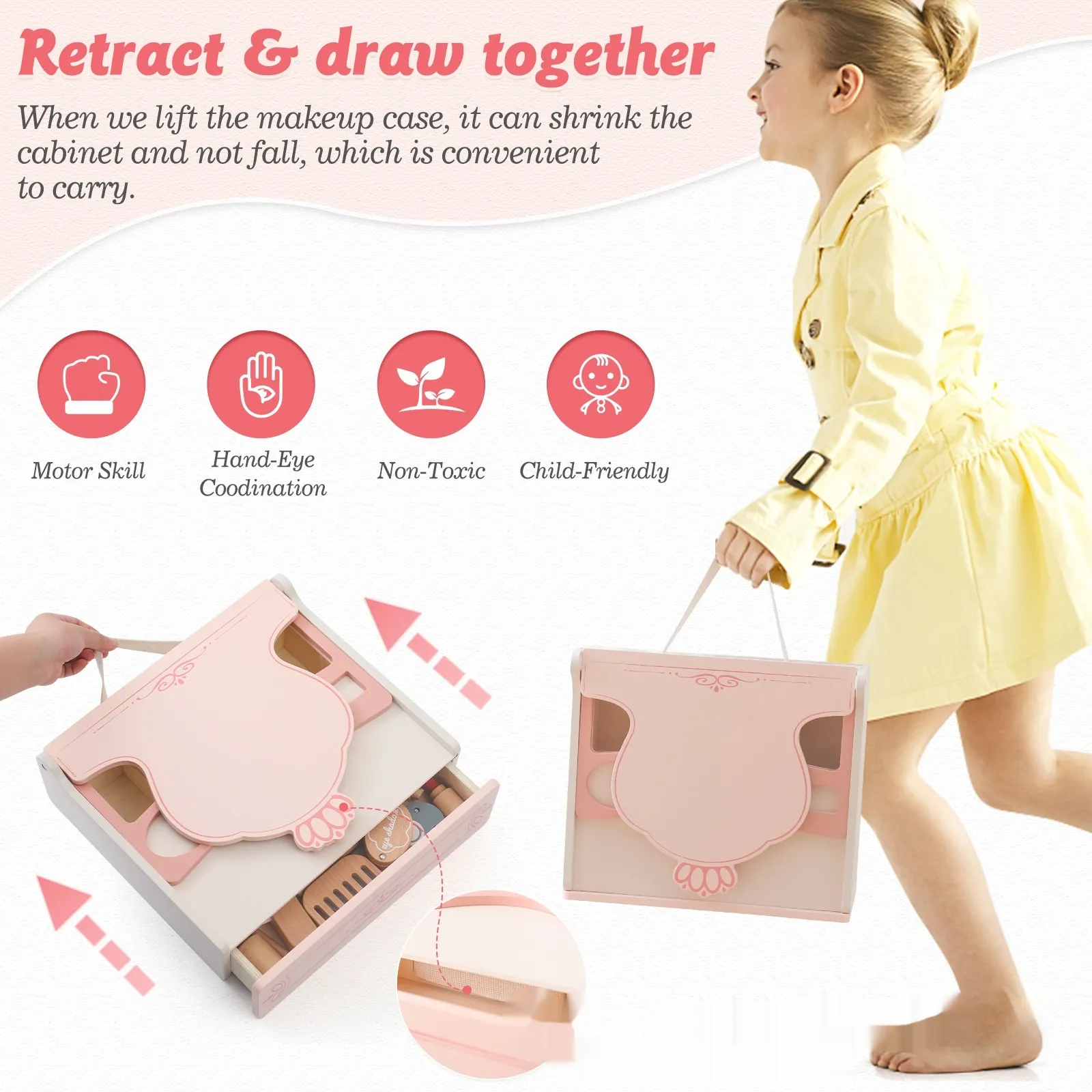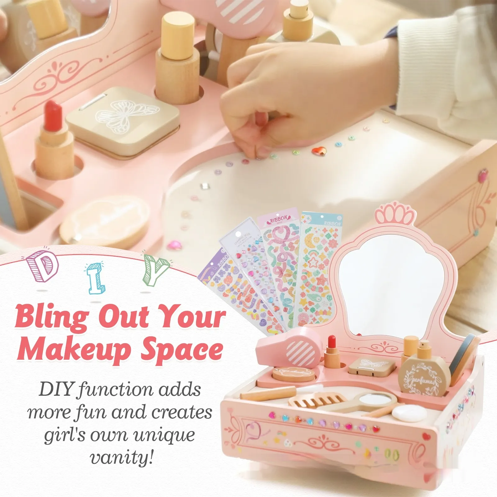 Girl Princess Play House Makeup Toys Small DreGirl Princess Play House Makeup Toys Small Dressing Table Wooden Children's Pink Mirrorssing Table Wooden Children's Pink Mirror