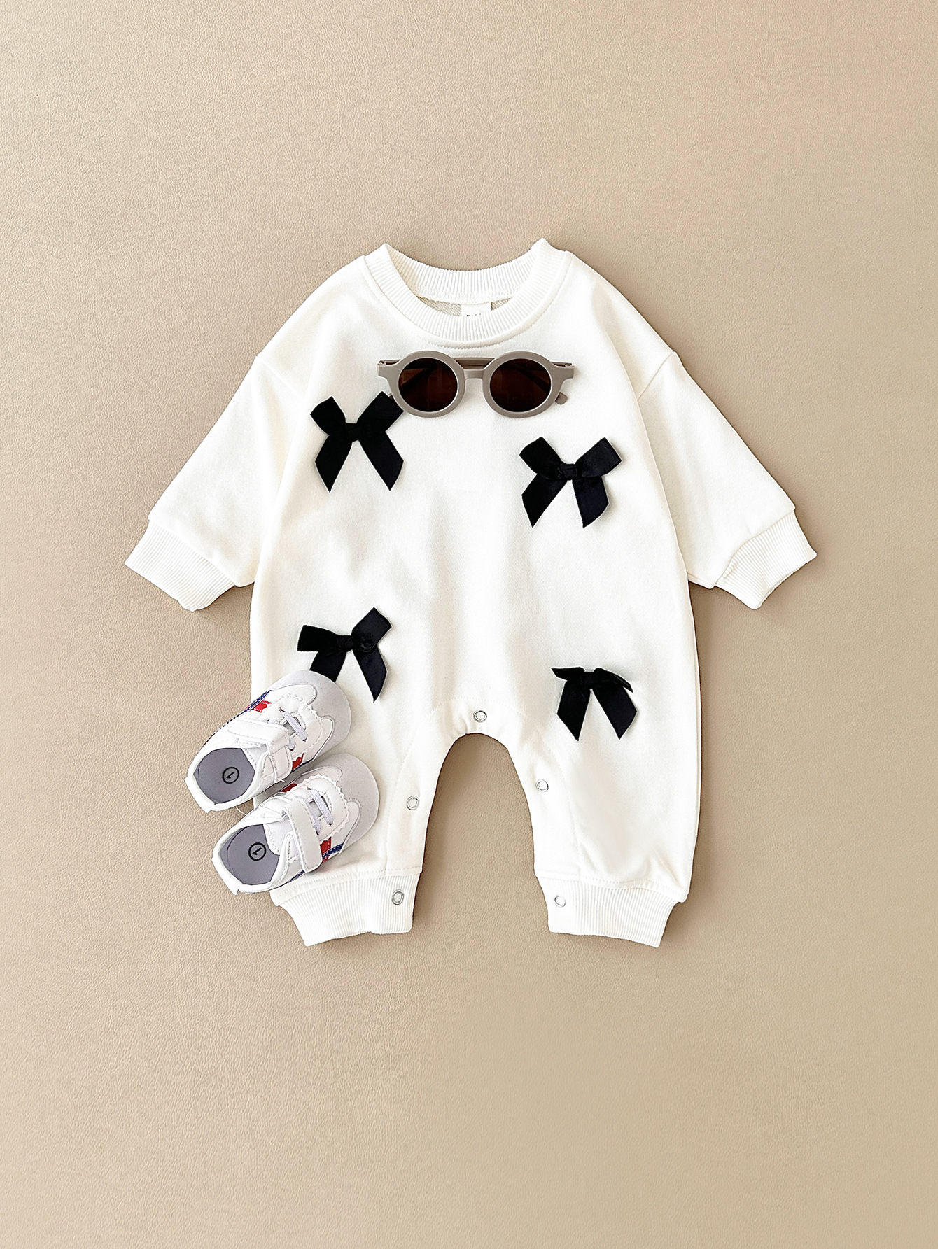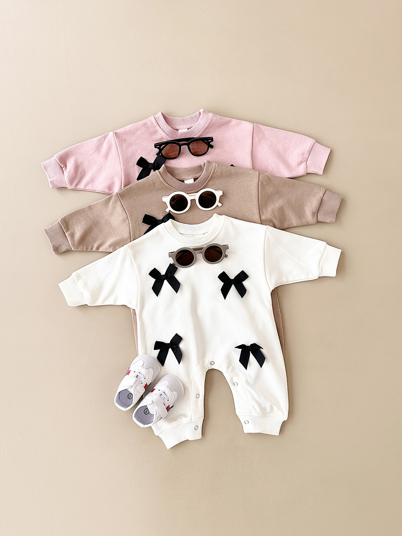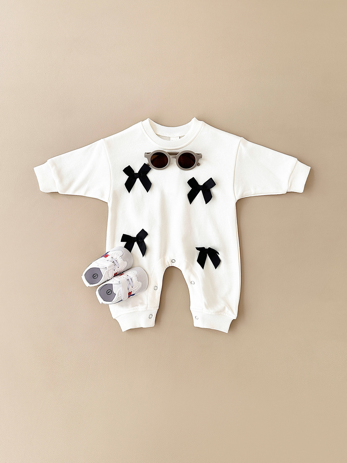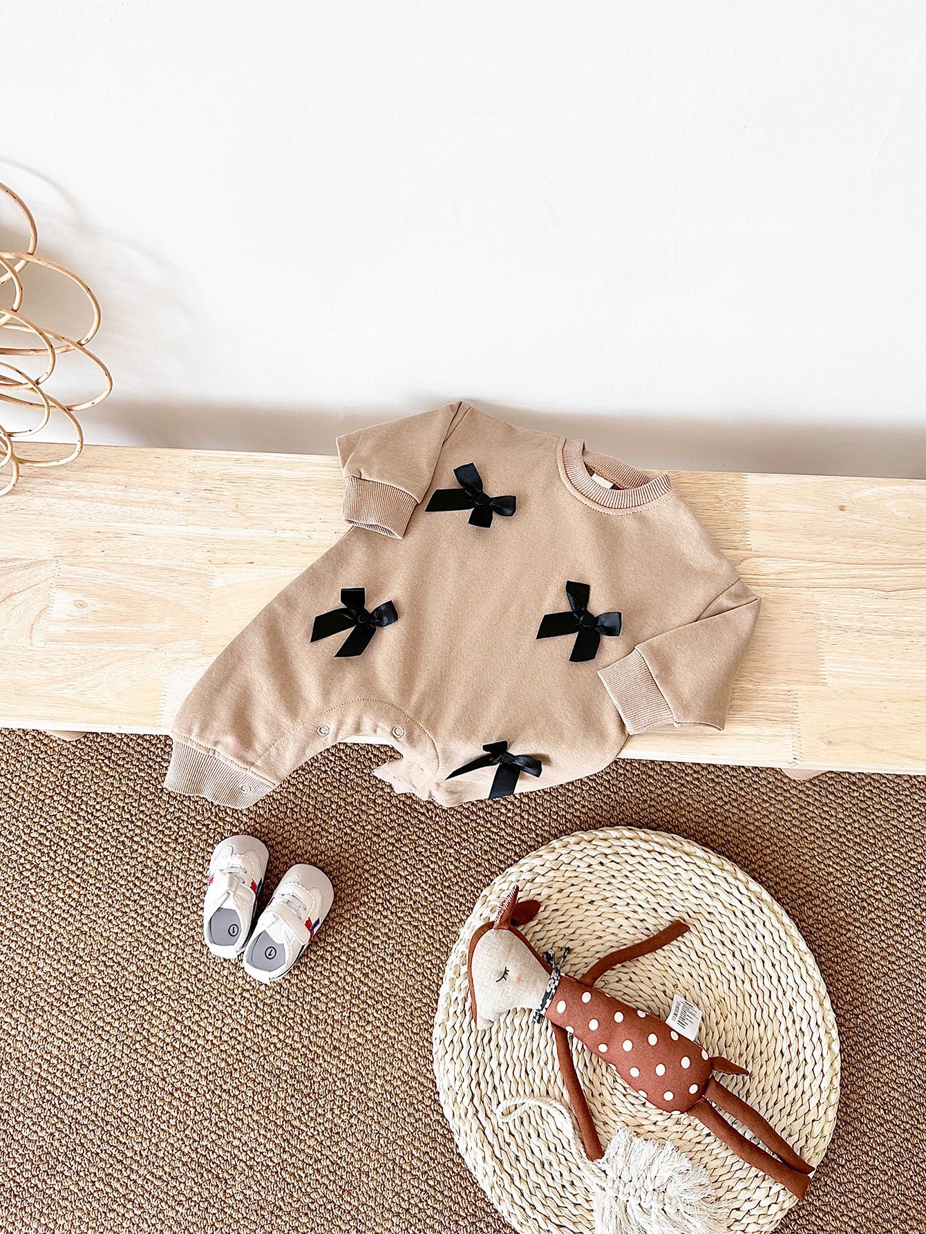 Girls' Fashion Personalized Bow Round Neck Jumpsuit - Stylish and Customizable Playwear