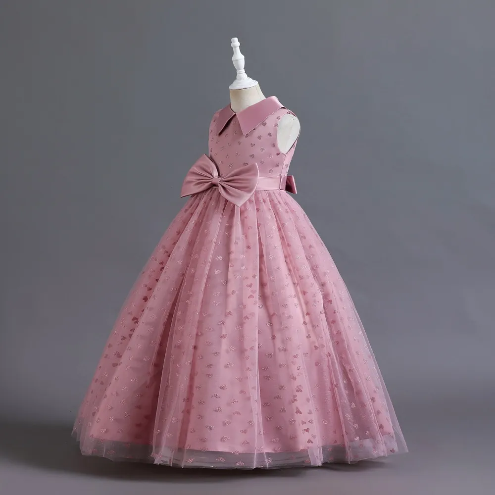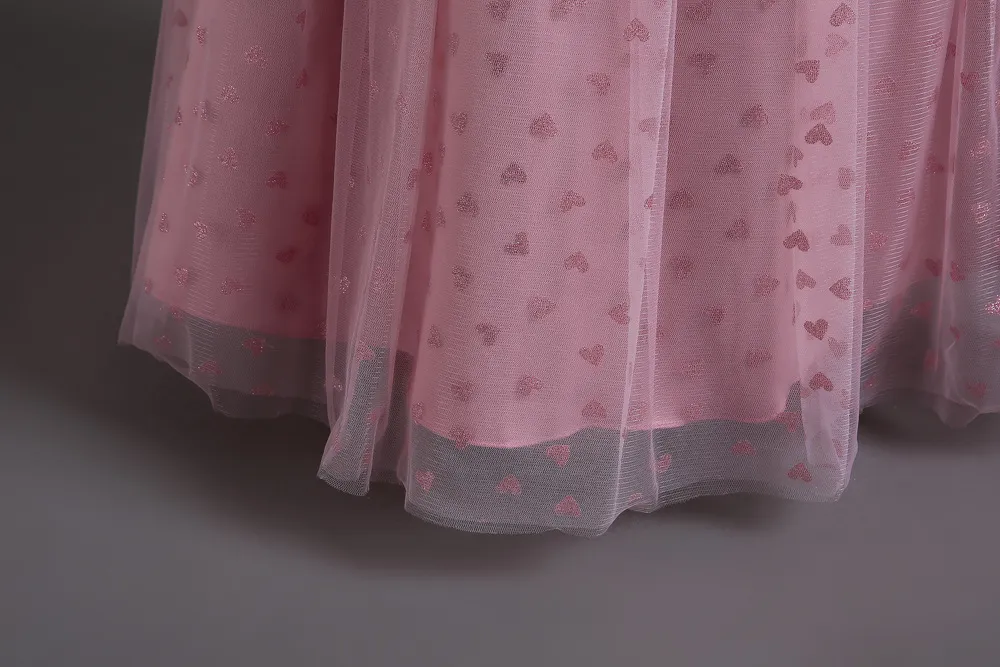 Elegant Flower Girl Design: The dress features a beautiful flower girl aesthetic with intricate floral details, making it