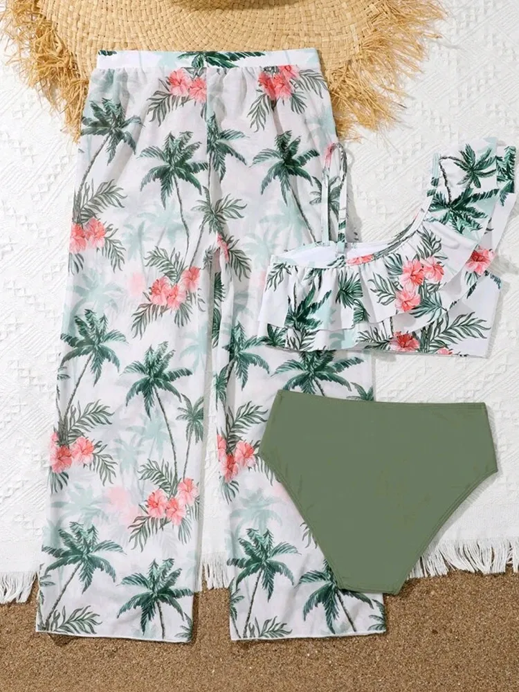 Girls' Flying Gauze Pants Swimsuit Three-piece Suit