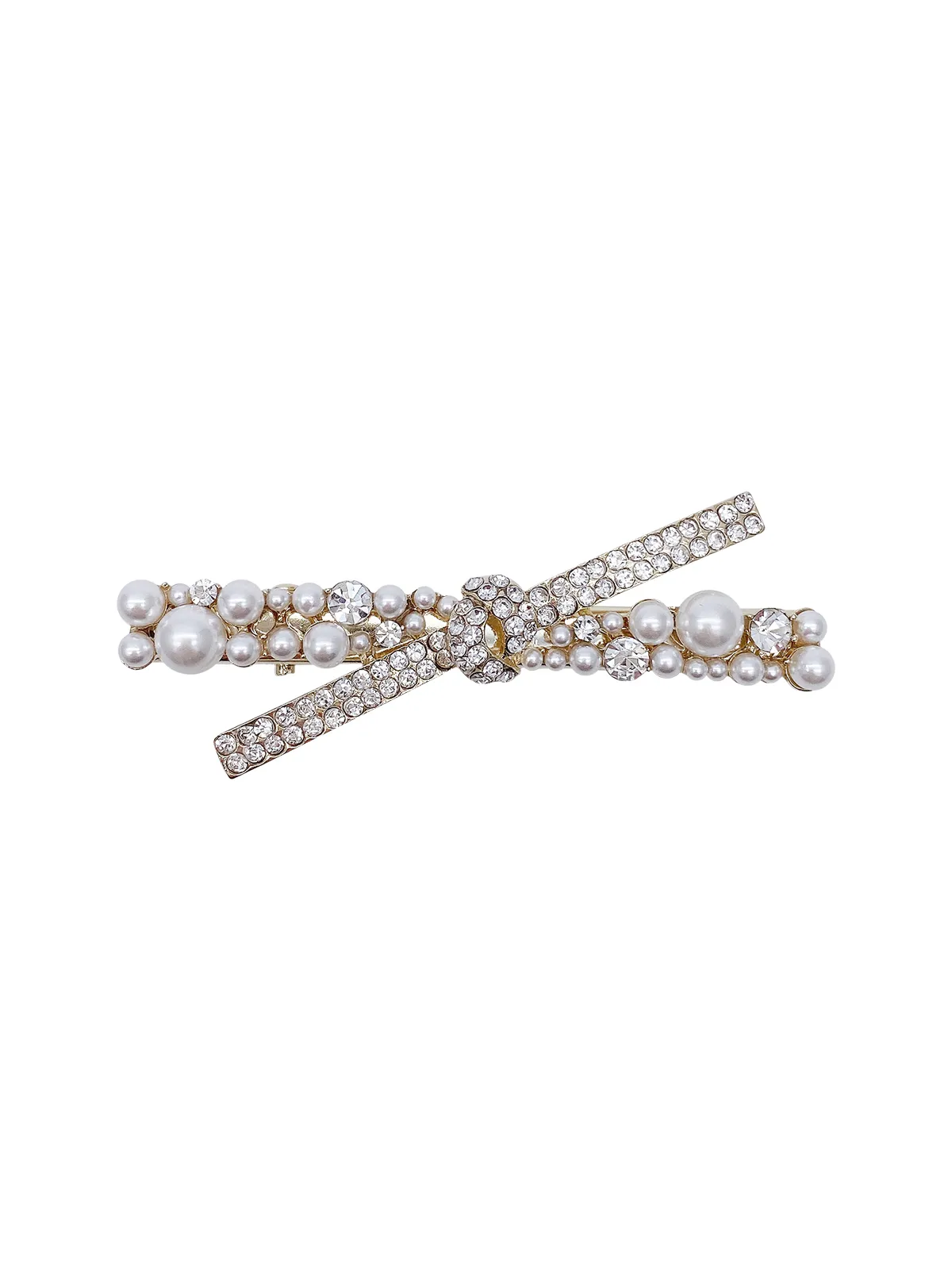This hairpin is adorned with both pearls and diamonds, creating a sophisticated and luxurious effect. The combination of smooth, lustrous pearls and sparkling diamonds adds a refined touch of glamour to your hair, creating a chic and eye-catching look. The pearls provide a soft, elegant finish, while the diamonds give the hairpin a bright, radiant shine that catches the light beautifully.