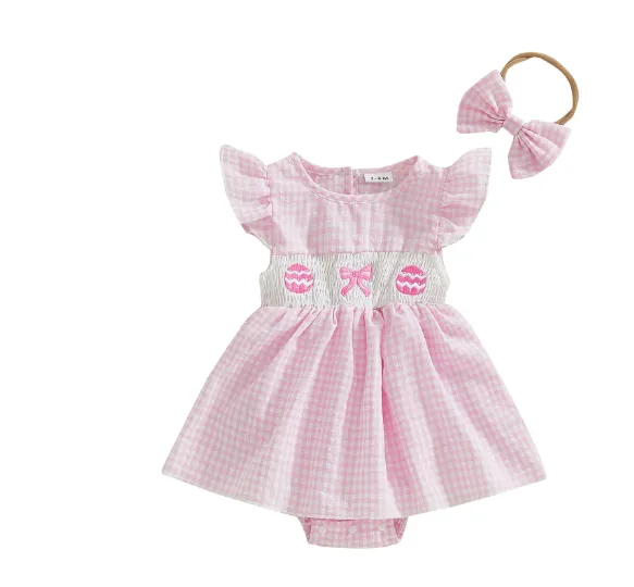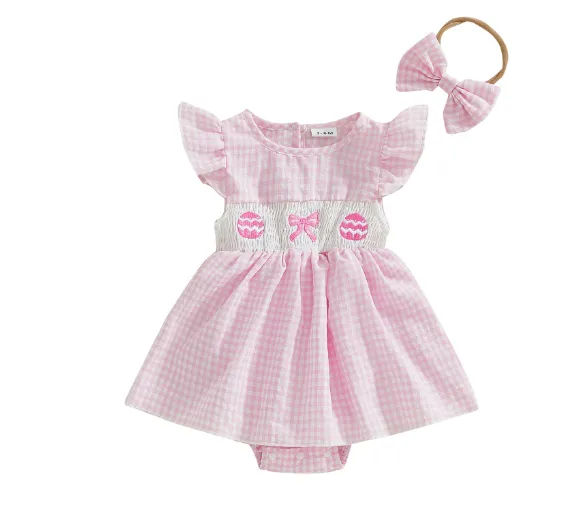 Girls' Plaid Egg Embroidery Smocking Romper – Stylish, Comfortable, and Perfect for Every Occasion