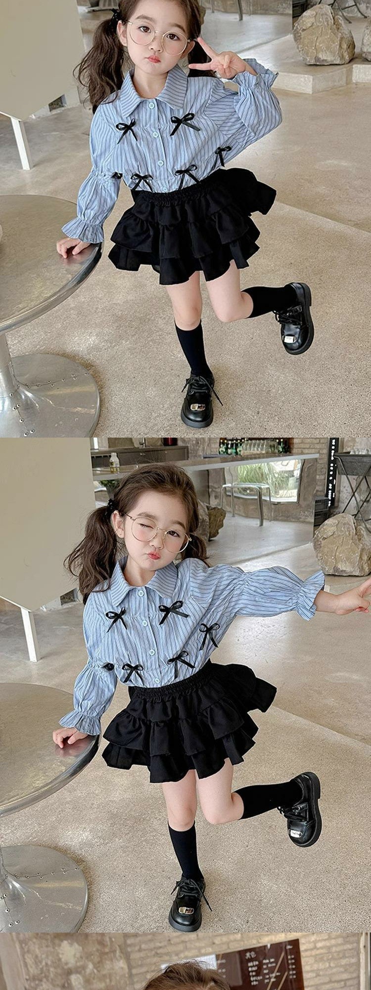 The lightweight shirt features clean lines, puff sleeves or ruffle details (depending on the variation), and a flattering cut – all the hallmarks of contemporary Korean kids' fashion.