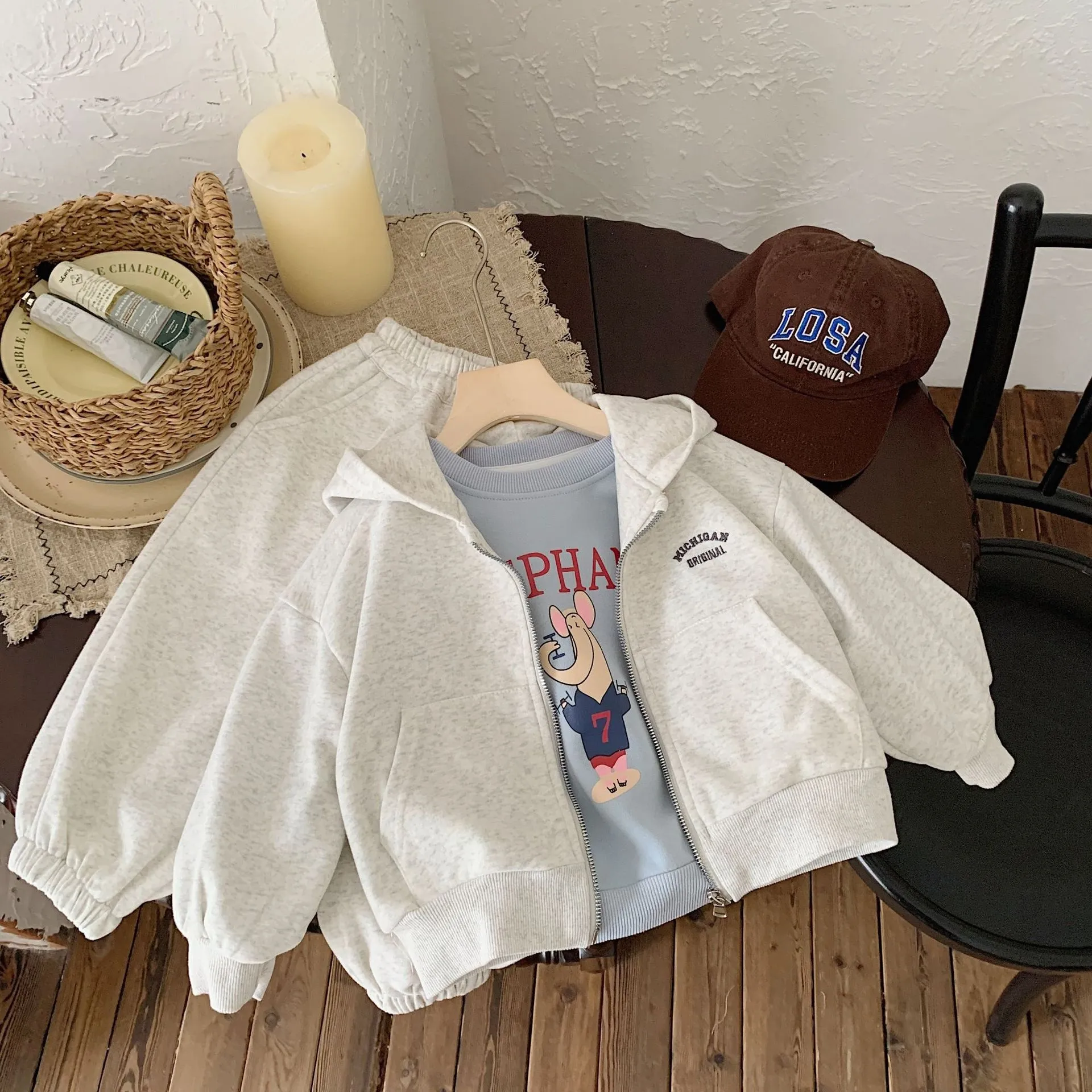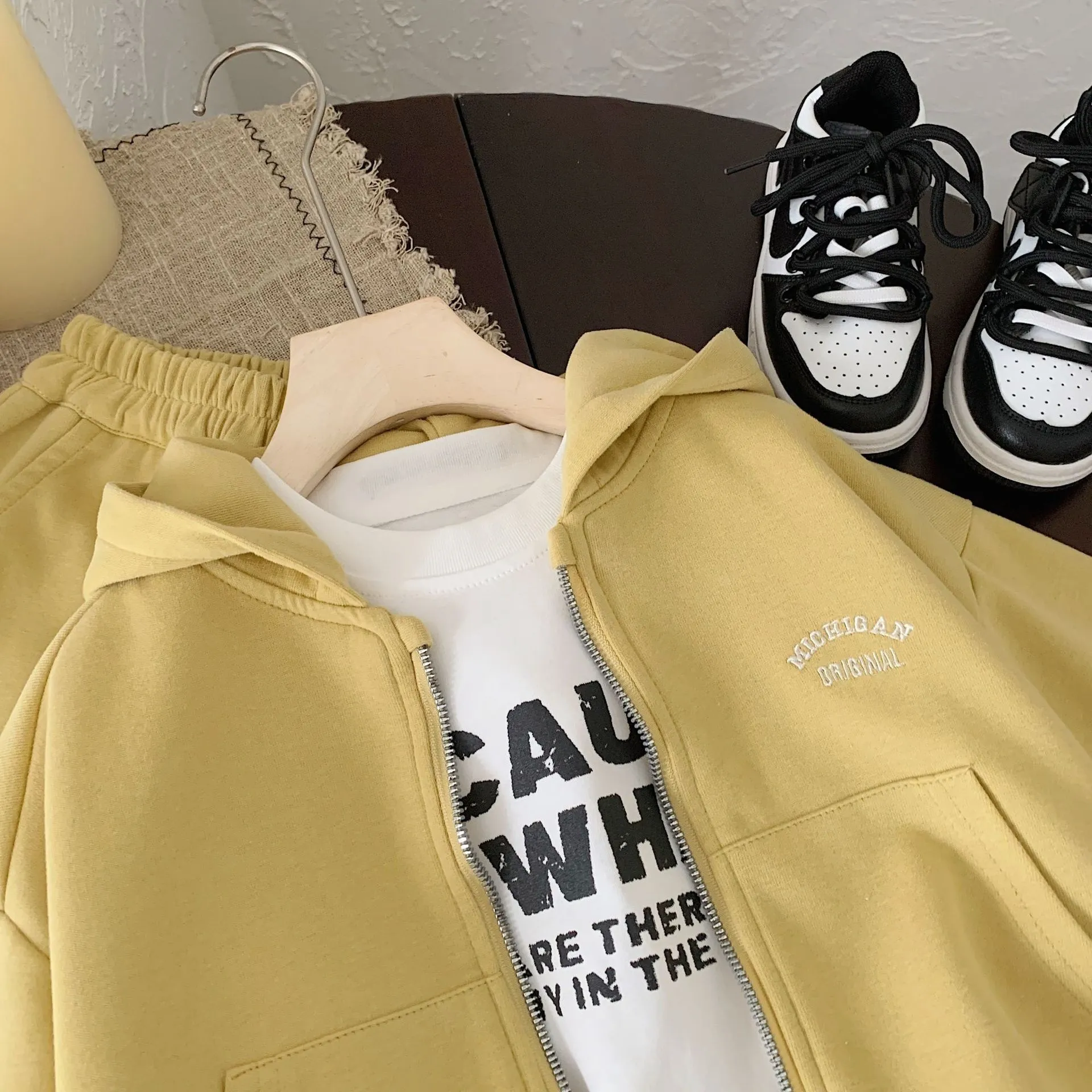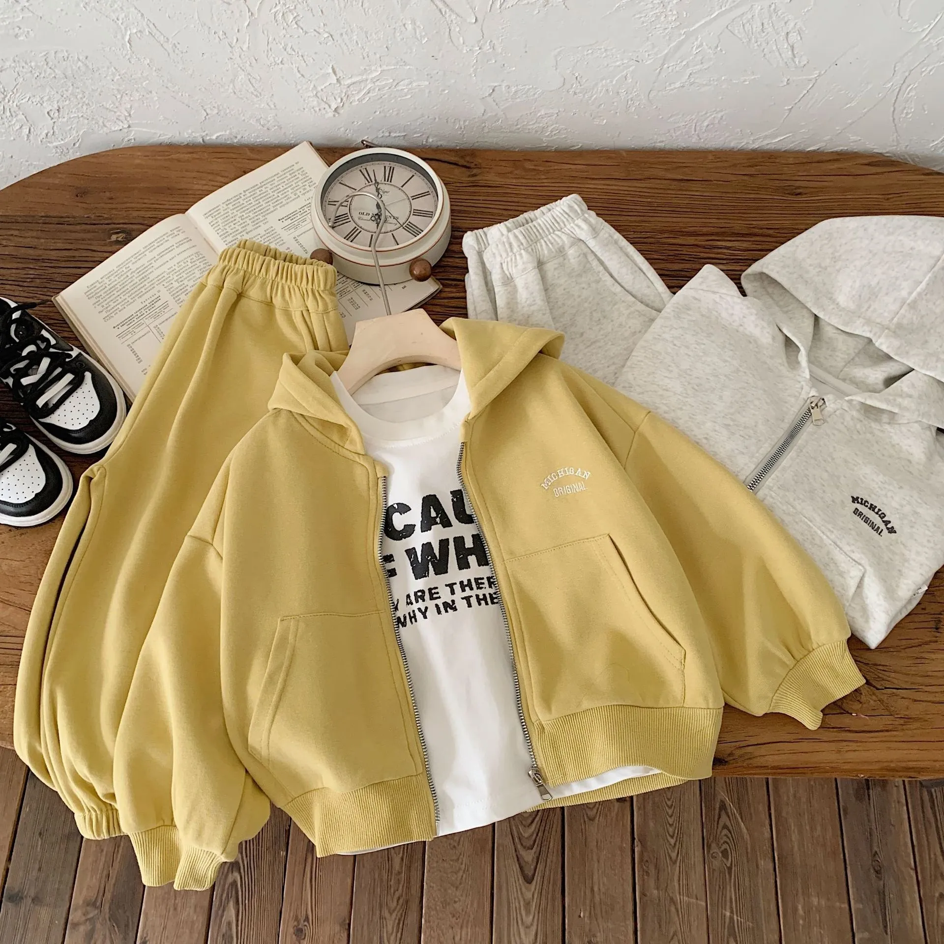 Girls' Solid Color Two-piece Letter Embroidered Jacket Casual Trousers