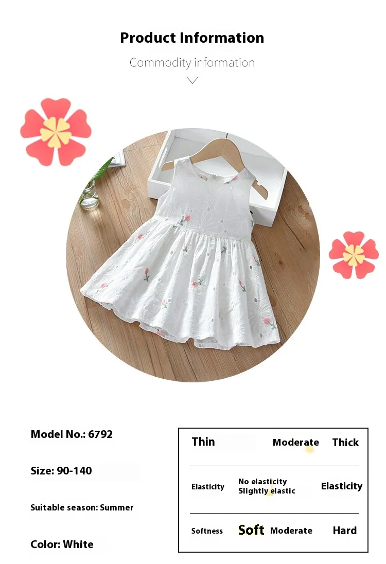 Introducing the Girls' Summer Floral Hollow Sleeveless Vest Dress: Stylish and Breezy for Warm Days