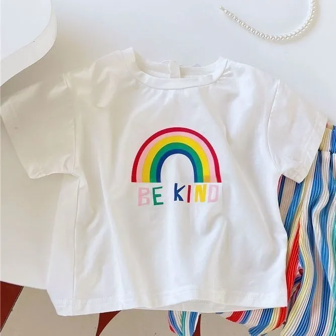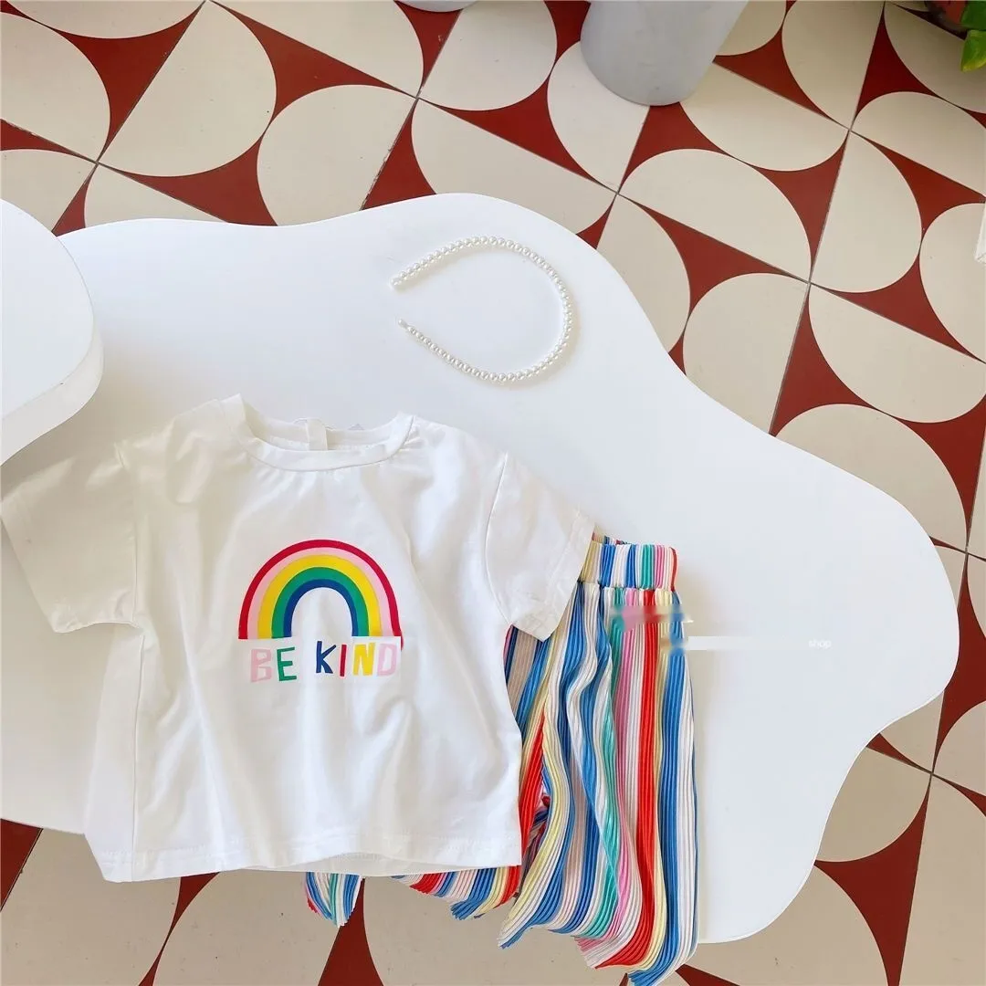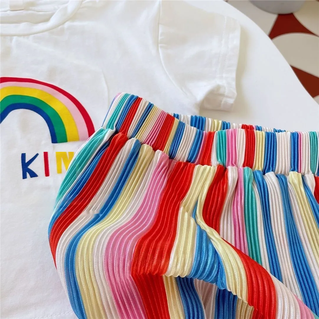 Girls' Summer Rainbow Short-sleeved T-shirt Short Pants Two-pieces
