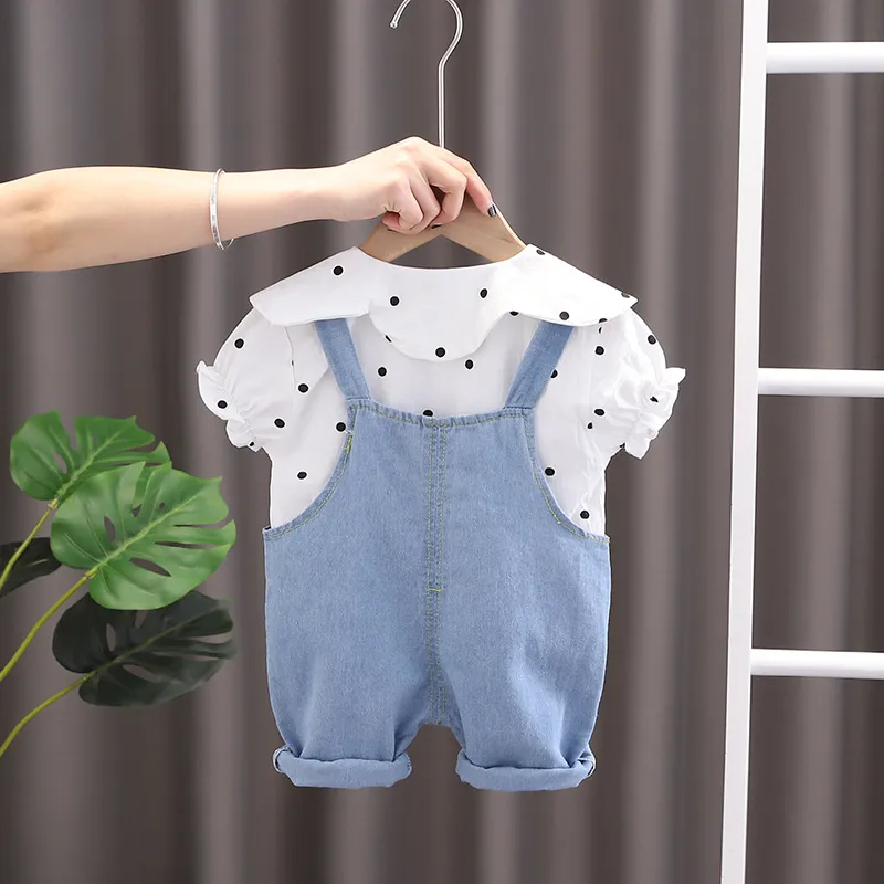 Girls' Summer Short-sleeved Suspender Pants Two-piece Set