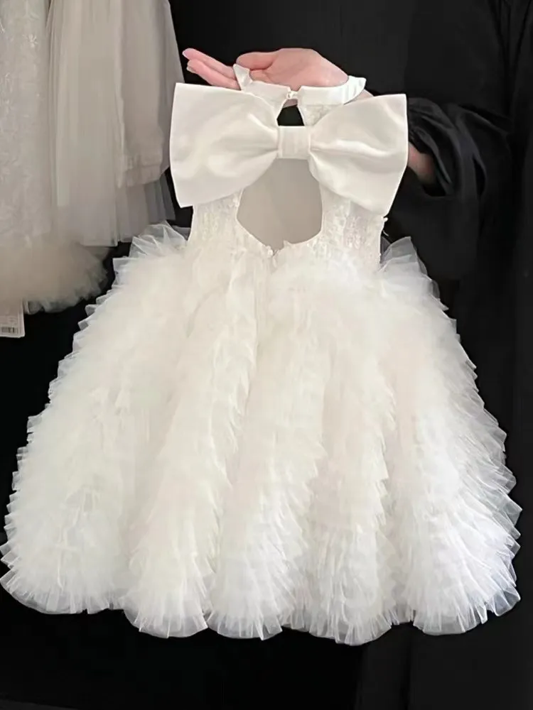 For those cooler days, a soft cardigan or light jacket can complement the dress while keeping your little one warm. Choose a pastel color to maintain the soft, whimsical theme or go for a bright contrast to make the outfit pop. A cardigan with a little embellishment can elevate the look, making it perfect for a more formal event.
