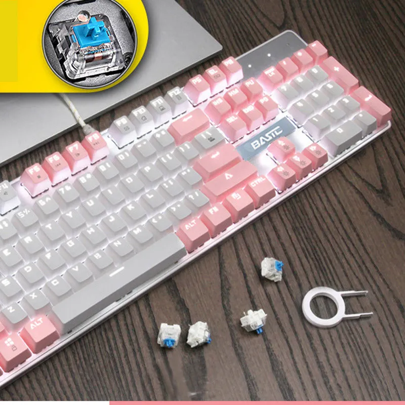 Girly Pink Mechanical Keyboard – 104 Keys Wired with Green, Black, or Red Switches