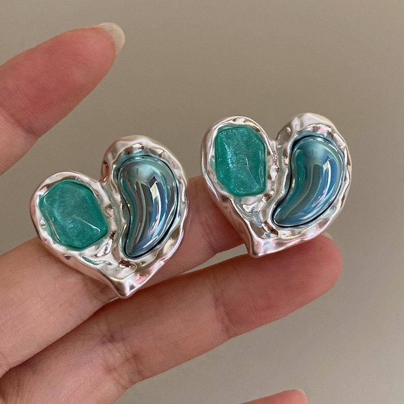 Glacier Blue Green French Retro Resin Love Metal Earrings