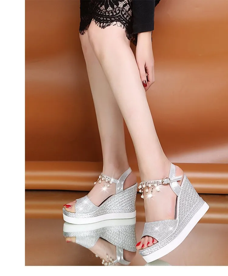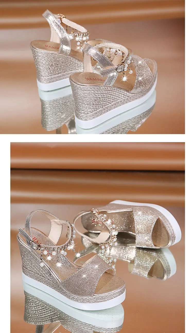 Fashion-Forward Footwear: As fashion trends evolve, these glitter platform sandals remain a timeless choice for those who