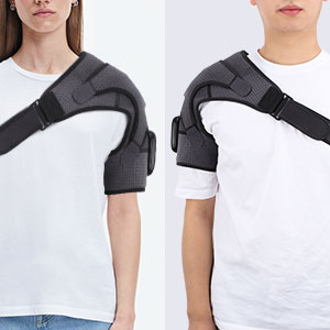 Adjustable electric shoulder brace is designed ergonomically for extended comfort. Shoulder brace is made with high quality neoprene fabric and an strength latching strap to ensure comfortable, breathable and won't not loosen during use.