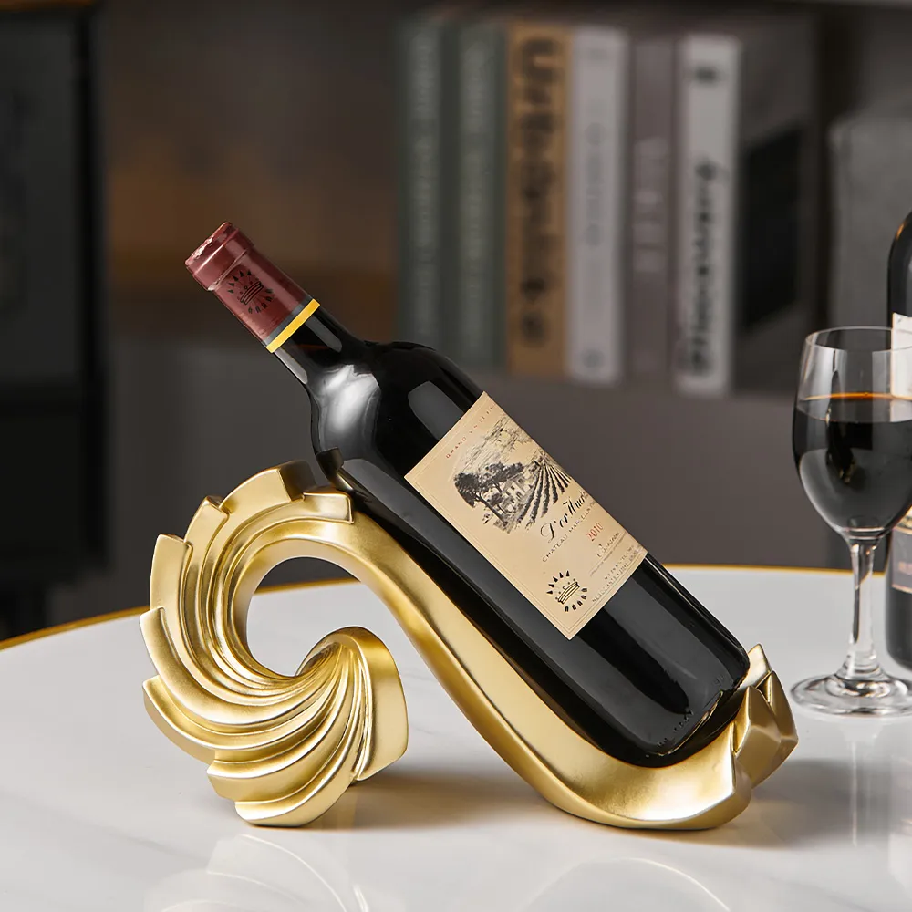The warm gold finish and fluid spiral shape are not just visually striking, but also space-efficient, allowing you to store multiple bottles in a compact and attractive display. Its minimalist design ensures it complements any decor style, from modern and industrial to more traditional interiors.