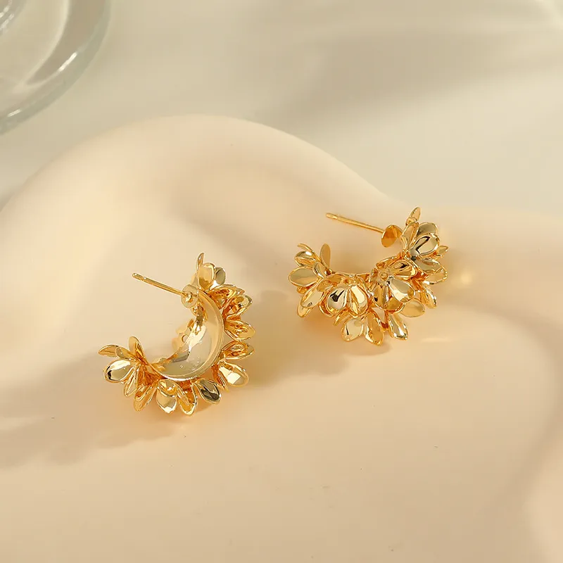 Golden Flowers C- Shaped Earrings New Retro Temperament