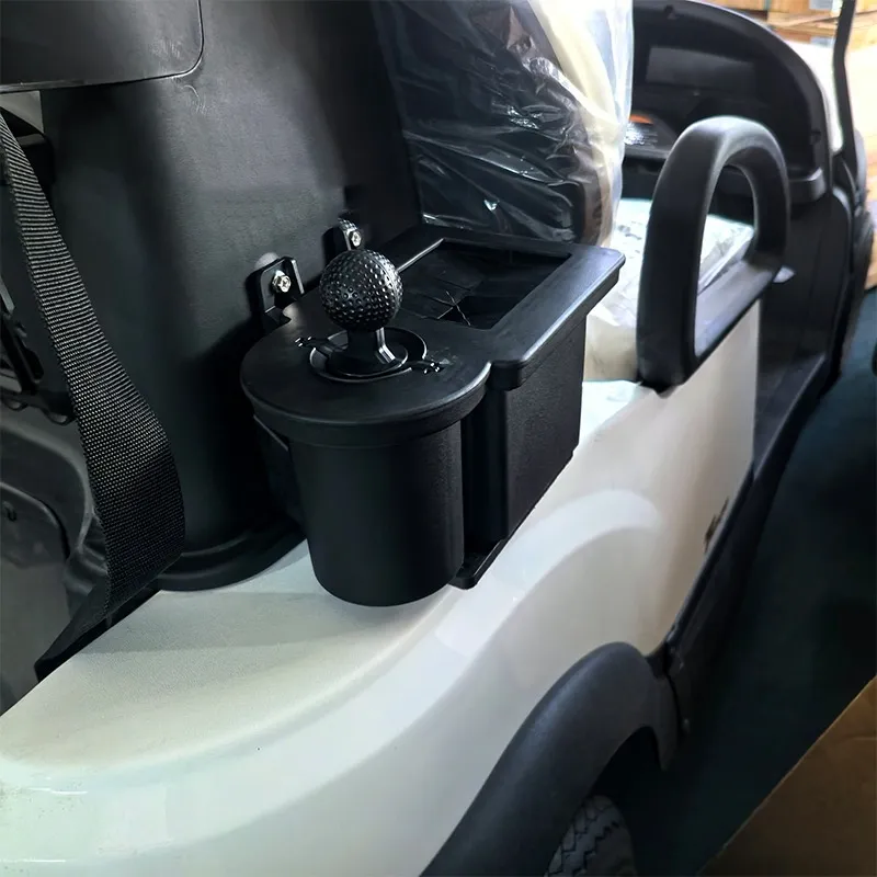 The Golf Cart Ball Washer is a specialized device mounted on your golf cart, designed to provide a convenient and efficient way to clean your golf balls between shots. Unlike traditional handheld ball washers or stationary cleaning stations found at some golf courses, this portable solution offers immediate access to a clean ball, eliminating the need to return to a designated area. Featuring a simple yet effective design, the ball washer incorporates a basin, brush, and sometimes a pressurized water system, allowing golfers to quickly and thoroughly clean their balls with minimal effort.