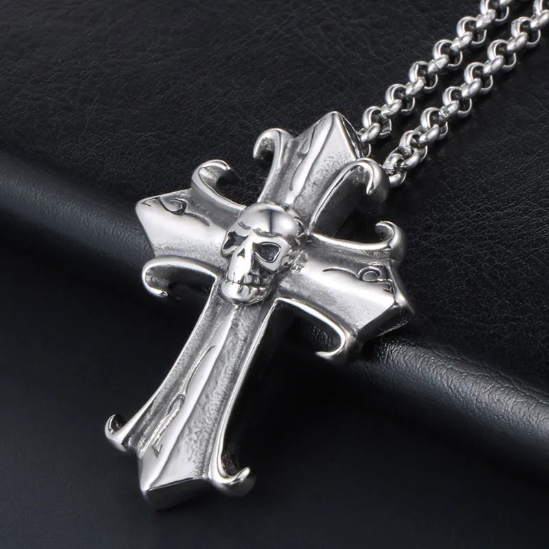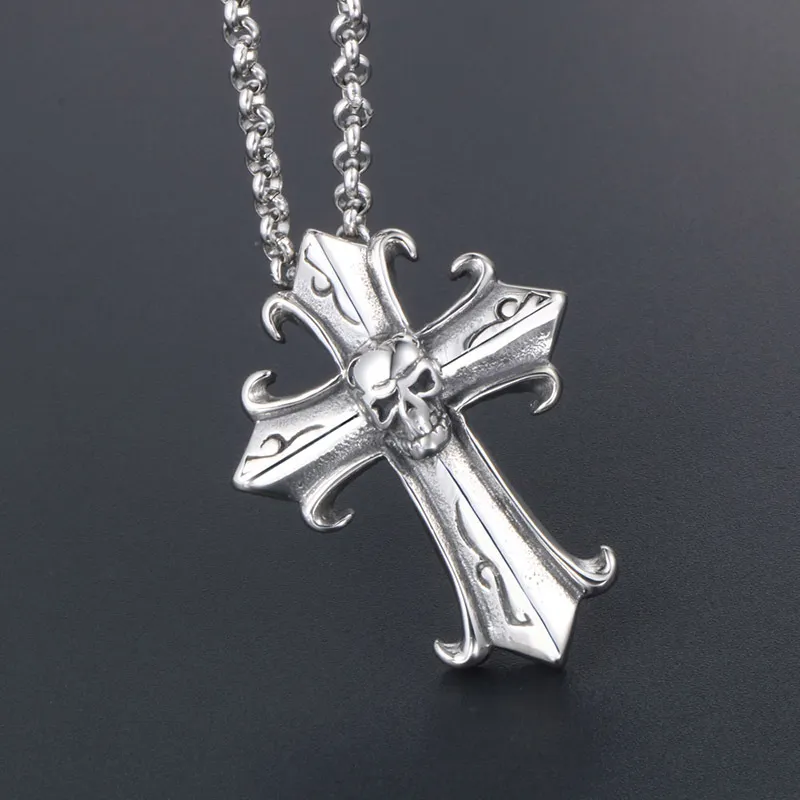 Gothic Vintage Cross Ghost Head Men's Titanium Steel Pendant Necklace Fashion Fashionmonger Punk Jewelry