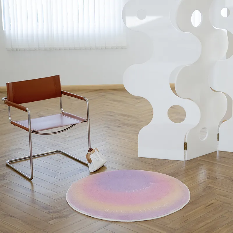 The round shape of the Gradient Atmosphere Carpet Bedroom Living Room Round Bedside allows it to seamlessly fit into a variety of room layouts. Its circular design is perfect for adding balance to corners or creating a focal point in the center of a room. Whether placed beside your bed, in front of the sofa, or in the center of the living room, this carpet works well with both small and large spaces, making it a versatile piece in any home.