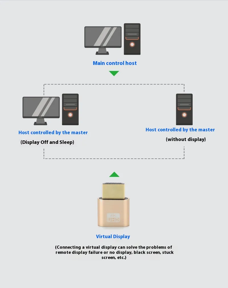 - Virtual Display Feature: Maintain system functionality and simulate display presence, perfect for testing and multi-display setups.