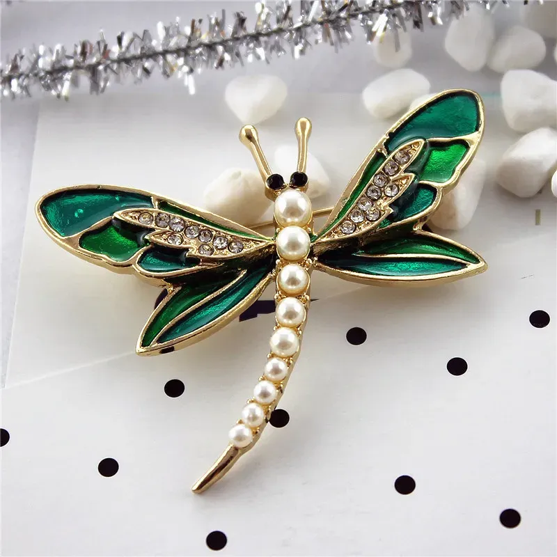 Green dragonfly pin