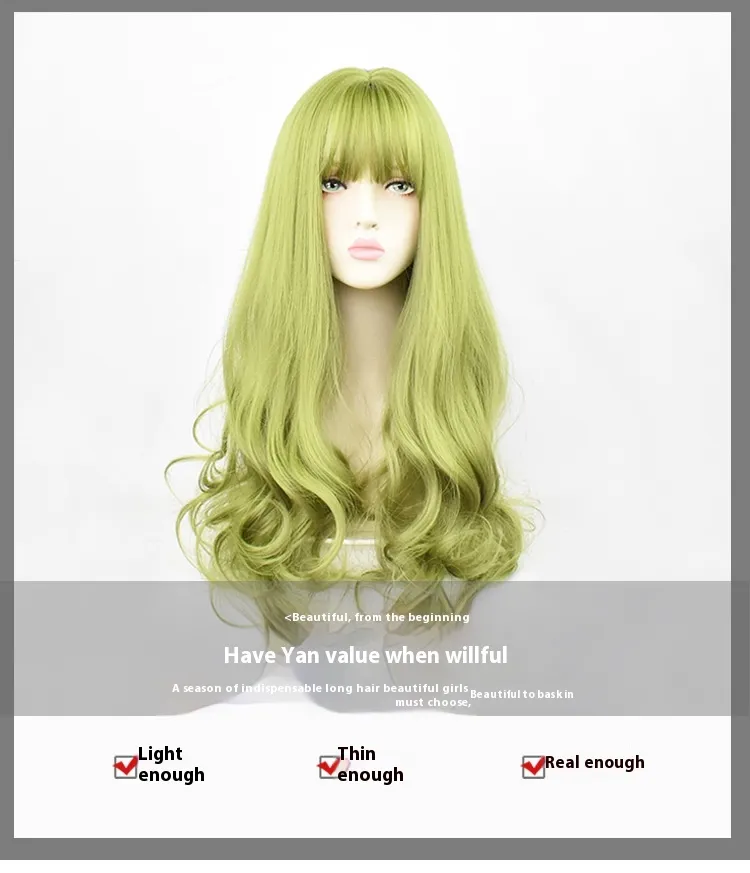 Versatile Styling: Whether you prefer straight, wavy, or curly hair, the Green Synthetic Wig can be styled