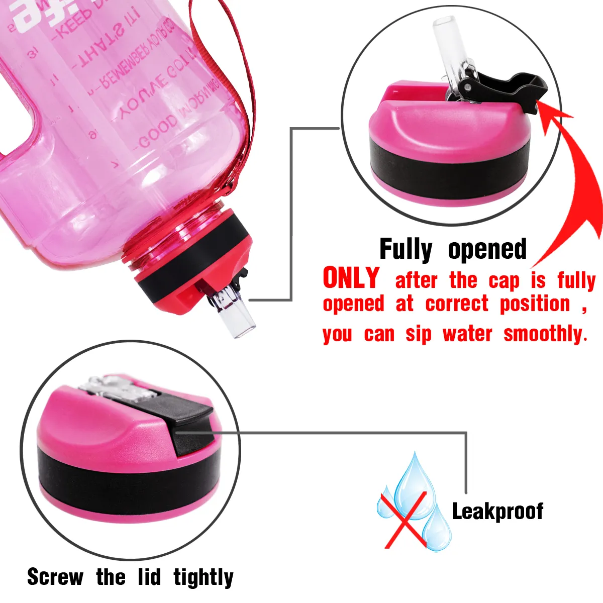 Durable and Leak-Proof: Made from high-quality, BPA-free plastic, this water bottle is built to withstand daily use and is