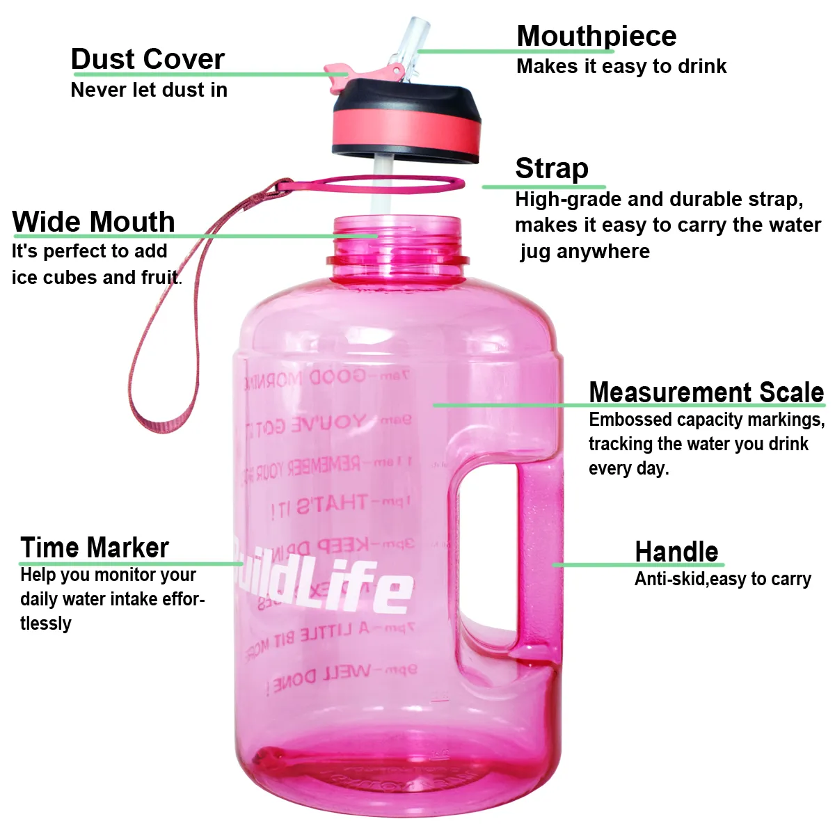 Large Capacity: The gallon-sized design ensures you have enough water to stay hydrated throughout your workout, reducing