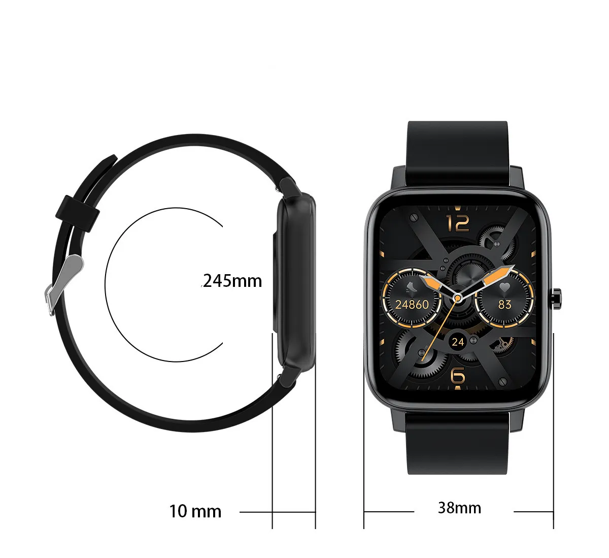 Additional Features: Massive Dial Download, Upload Photos, Pedometer, Heart Rate, Sleep, Sedentary, Mileage, Blood Oxygen, Blood Pressure, Mobile Phone Search, Calories, Bluetooth, Information, Wechat
