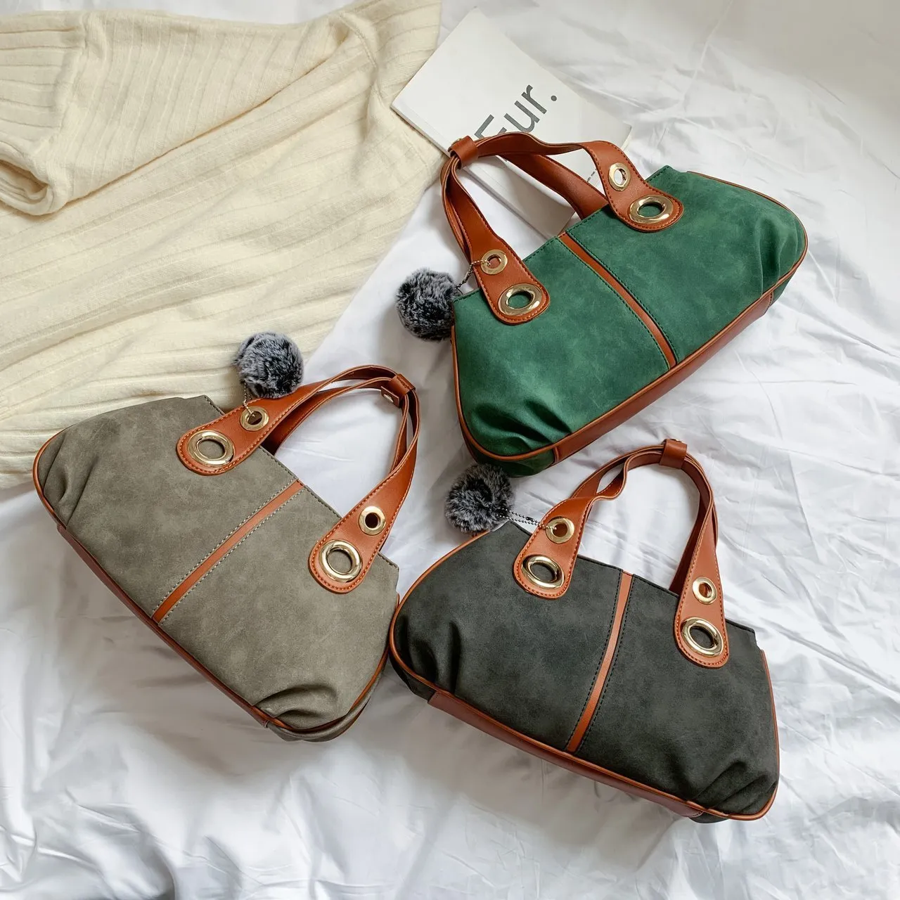 Hair Ball Pendant Frosted Women Bag