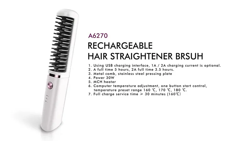 Hair Straightener Hot Rechargeable Heat Hair Straightener
