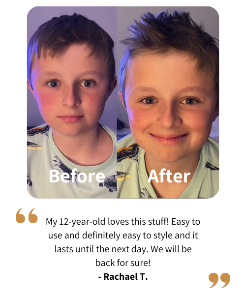 We know kids start caring about their hair at a young age. Our hair styling powder is fast and very easy to use making it perfect for kids and their parents!