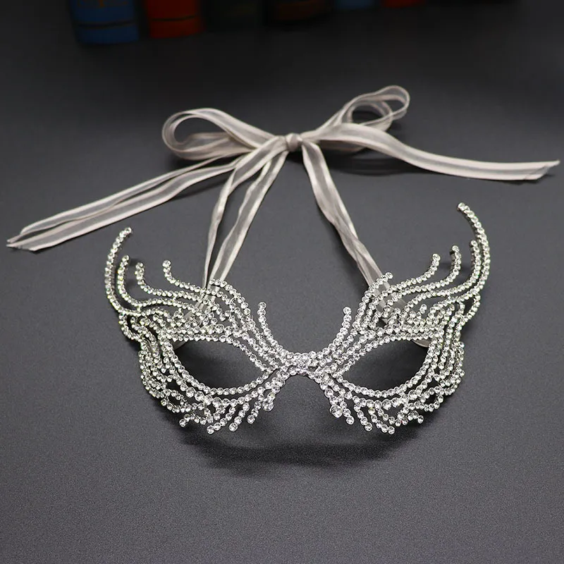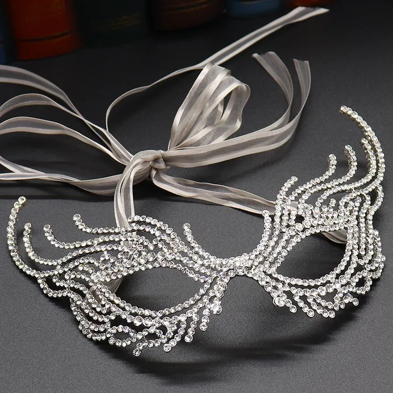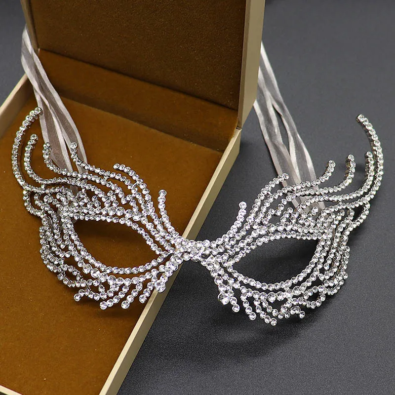 - Step 2: Position the mask over your face, ensuring the rhinestone design is centered and aligned.