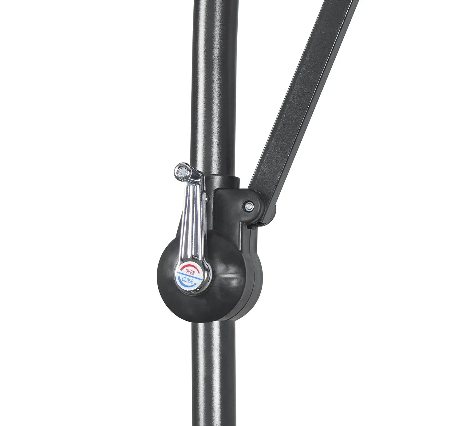Set Up the Umbrella: Using the crank lift system, raise the umbrella to your desired height. Adjust the tilt to ensure the